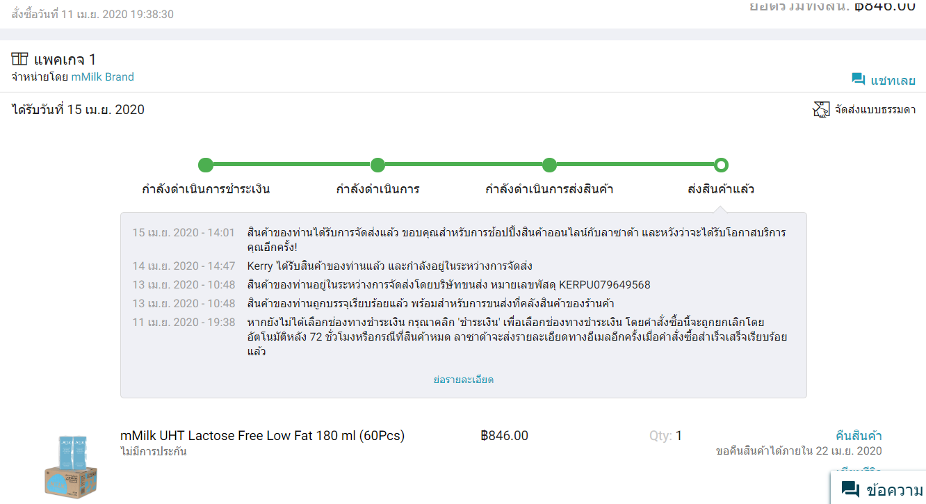 งซื้อไปตอนวันที่ 11/04 ช่วงค่ำๆตามรูปภาพครับ