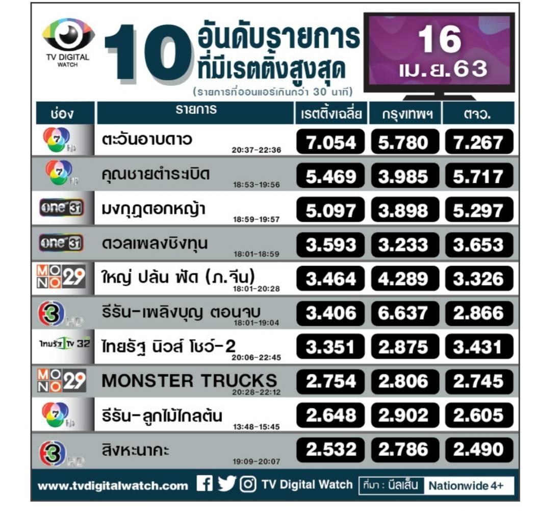 ละครเย็นช่อง 7 vs ช่อง One เรตติ้งสูสีกันแล้ว