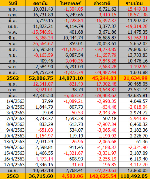 Sinthorn Summary 17/4/2563 : ต่างชาติขายสุทธิ -196.85 ลบ.