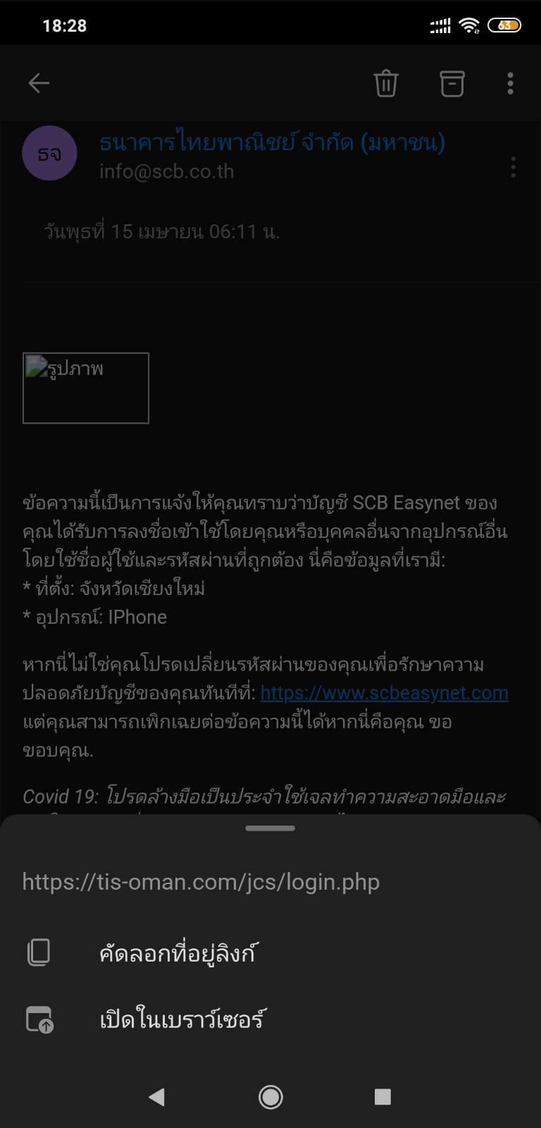 [เตือนภัย] อีเมลปลอมแบบอัพเกรดของ SCB ปลอมได้แม้กระทั่ง email address