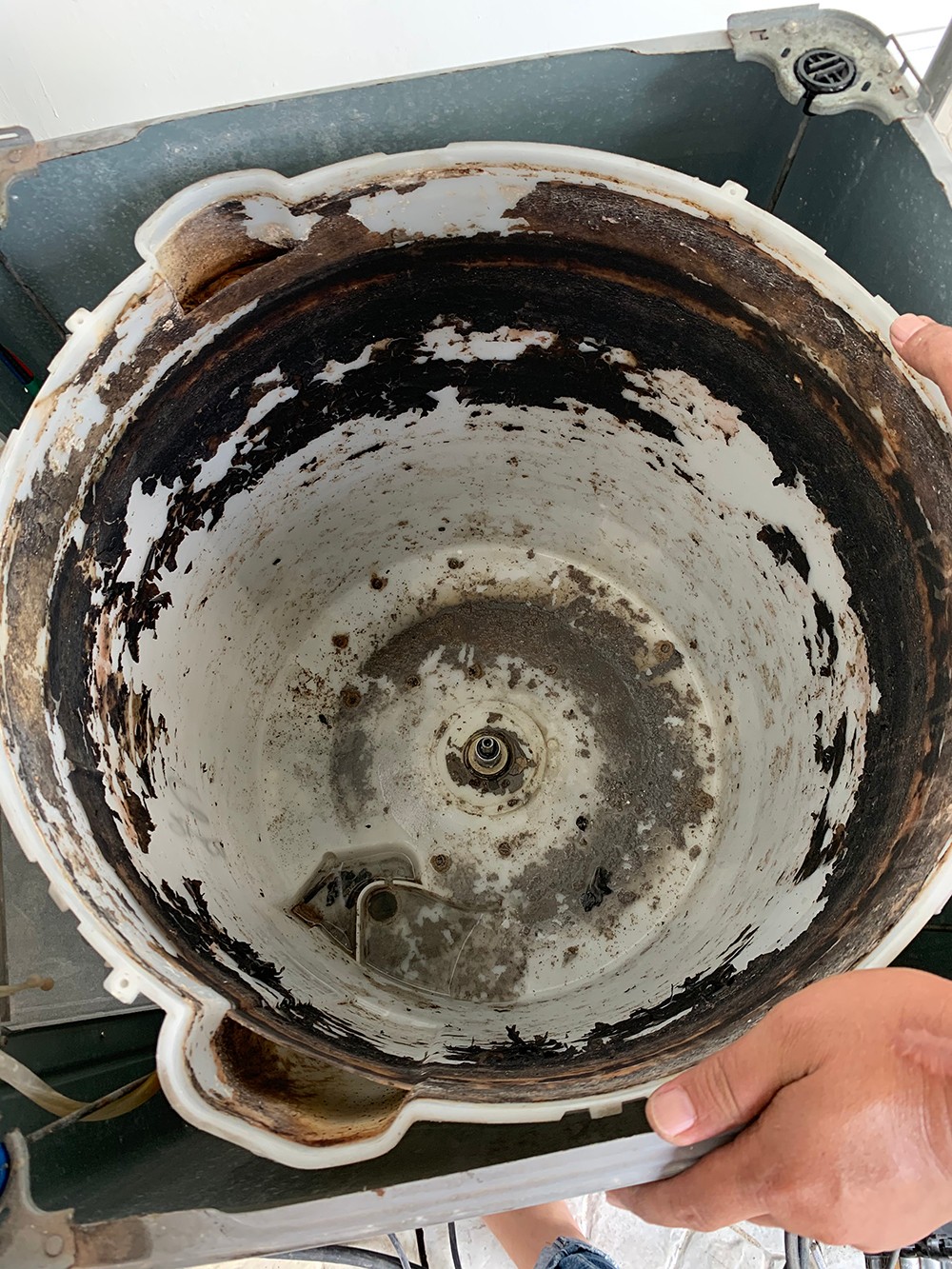 เห็นภาพแล้วนึกออกเลยใช่มั้ยค่ะว่า ซักผ้ายังไงให้ไม่สะอาด พี่ช่างบอกว่าคนส่วนใหญ่ไม่รู้ว่าต้องล้าง คิดว่าแค่กดล้างถังมันก็ทำความสะอาดตัวเอง เข้าใจผิดกันมาตลอดจ้าาาาาาาา ต้องล้างทุก 1 ปีเหมือนแอร์ ระหว่างนั้นกดล้างถังได้พี่แกบอกควรทำสัปดาห์ละครั้งแนะนำซื้อน้ำยาในไดโซะมาล้างถูไถได้ แต่ควรล้างใหญ่ทุกปีค่ะ!