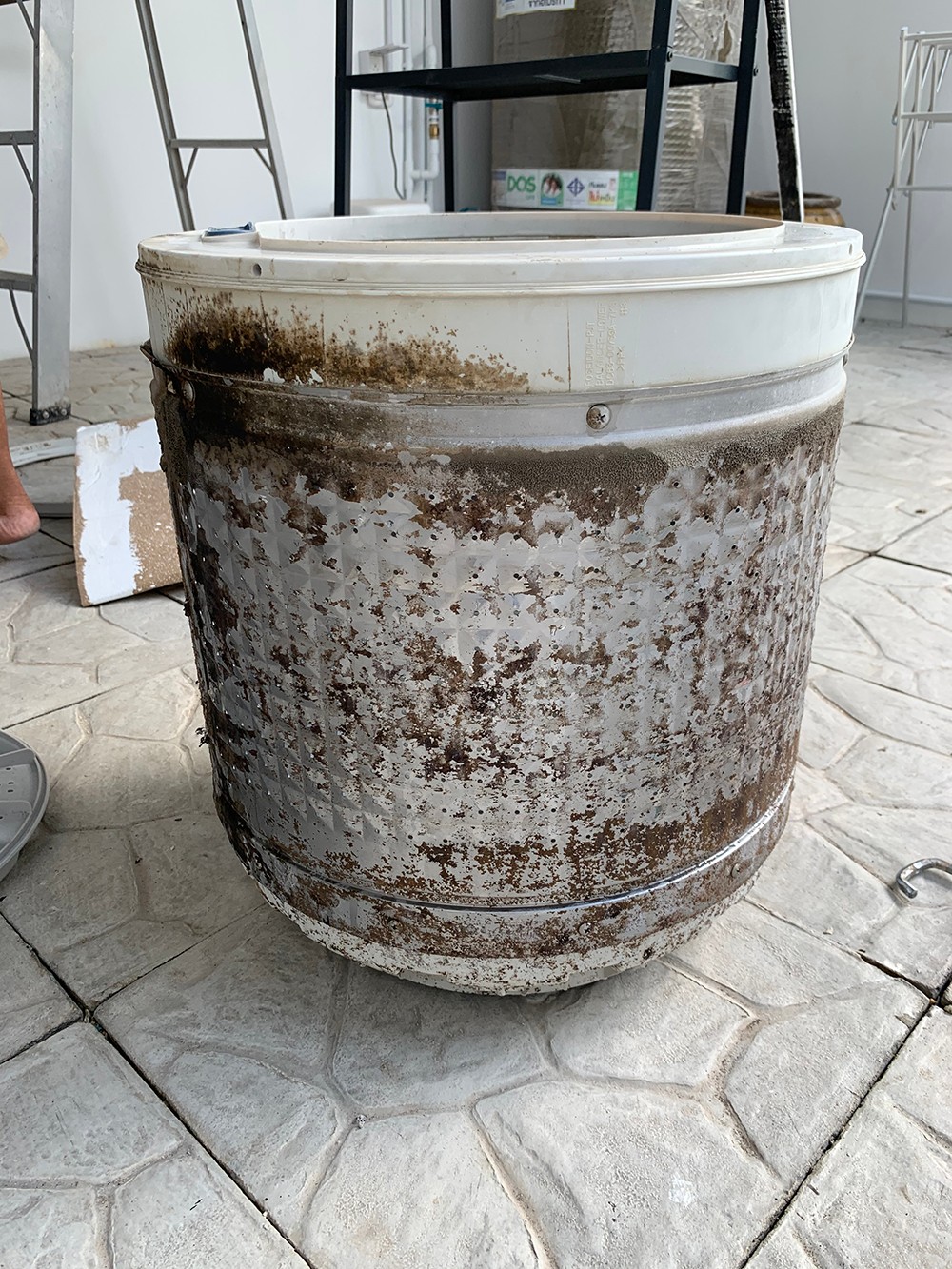 ช่างบอกว่าหินปูนจากน้ำ และคราบผงซักฟอกมันไปเกาะ พอช่างเค้าใช้เครื่องมือไฟฟ้า พยายามถอดถังก็แล้ว แฟนเราไปช่วยถอดก็แล้วก็ถอดไม่ได้ ทำไงอ่ะทีนี้ให้ใช้ก็คงไม่ไหว ในที่สุดช่าง HomePro ยอมแพ้เพราะเค้ากลัวเครื่องซักผ้าพัง HomePro ก็ดีมากนะคะ บอกว่าในเมื่อล้างไม่ได้ก็จะคืนเงินให้