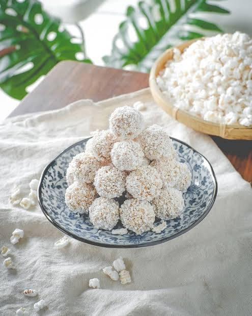 ขนม ชนิดนึง เป็นก้อนสีขาว ชิ้นเท่าลูกปิงปอง เหมือนๆ ข้าวตอกหวานๆปั้น กินแล้วเหนียวมือนิดหน่อย หอมๆ ข้าว