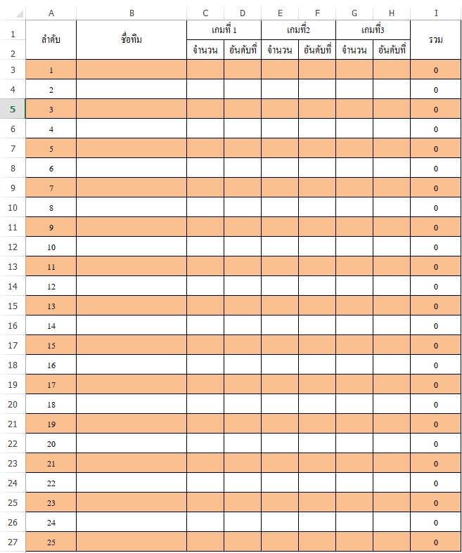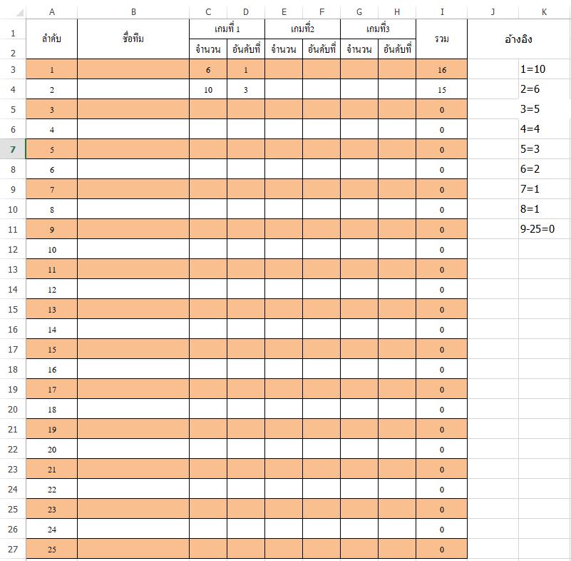 เเล้วให้มันมาร่วมกัน เช่น สมมุตนะครับ ลำดับที่ 24 ได้จำนวน 6 อันที่ 1ซึ่งมีค่าเท่า(10) เเล้วบวกกันได้ 16 ในช่องรวมคะเเนน เเบบนี้อ่ะครับ