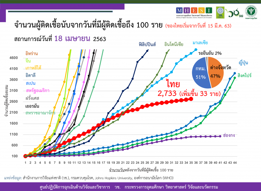 ผู้ติดเชื้อสะสม 2,733 ราย ใน 68 จังหวัด (เพิ่มขึ้นในวันนี้ 33 ราย)