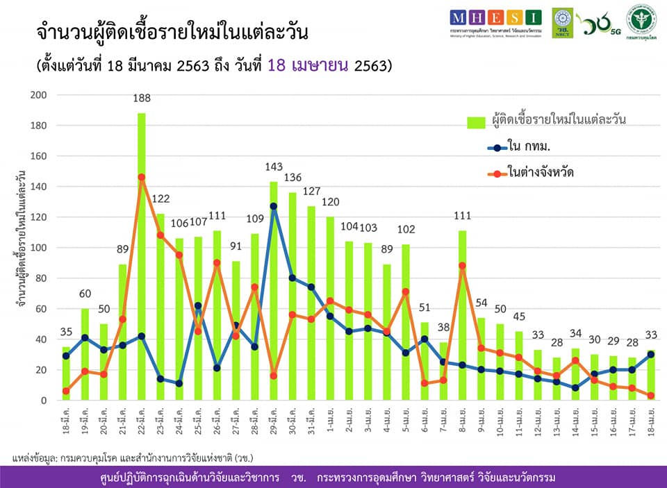 รายงานข้อมูลสถานการณ์การติดเชื้อโควิด-19 ณ วันเสาร์ที่ 18 เมษายน 2563