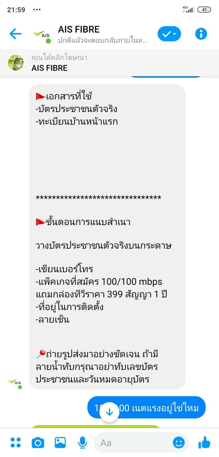 ขออณุญาติสอบถาม ais ไฟเบอร์ เน็ตบ้าน ครับ