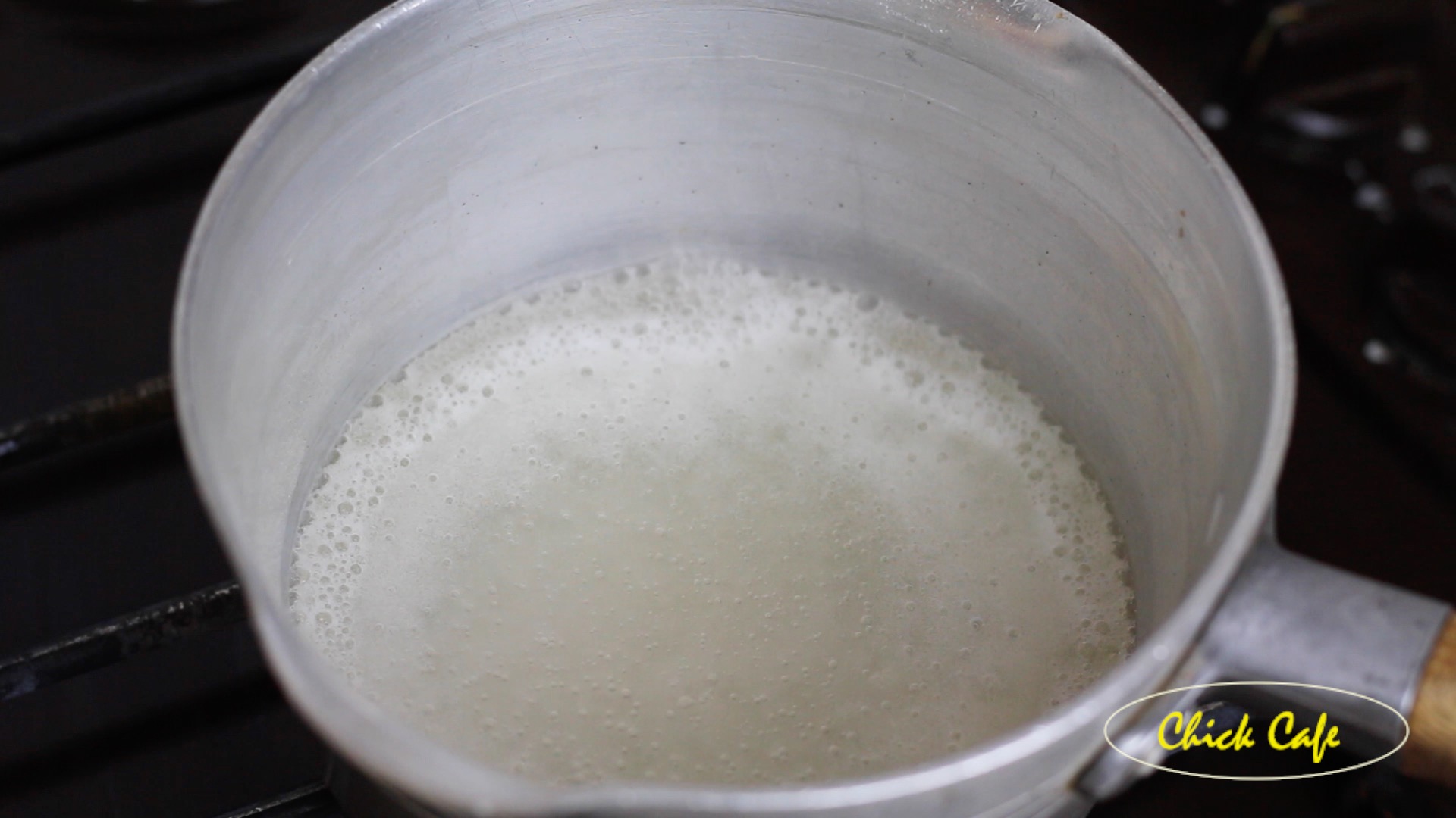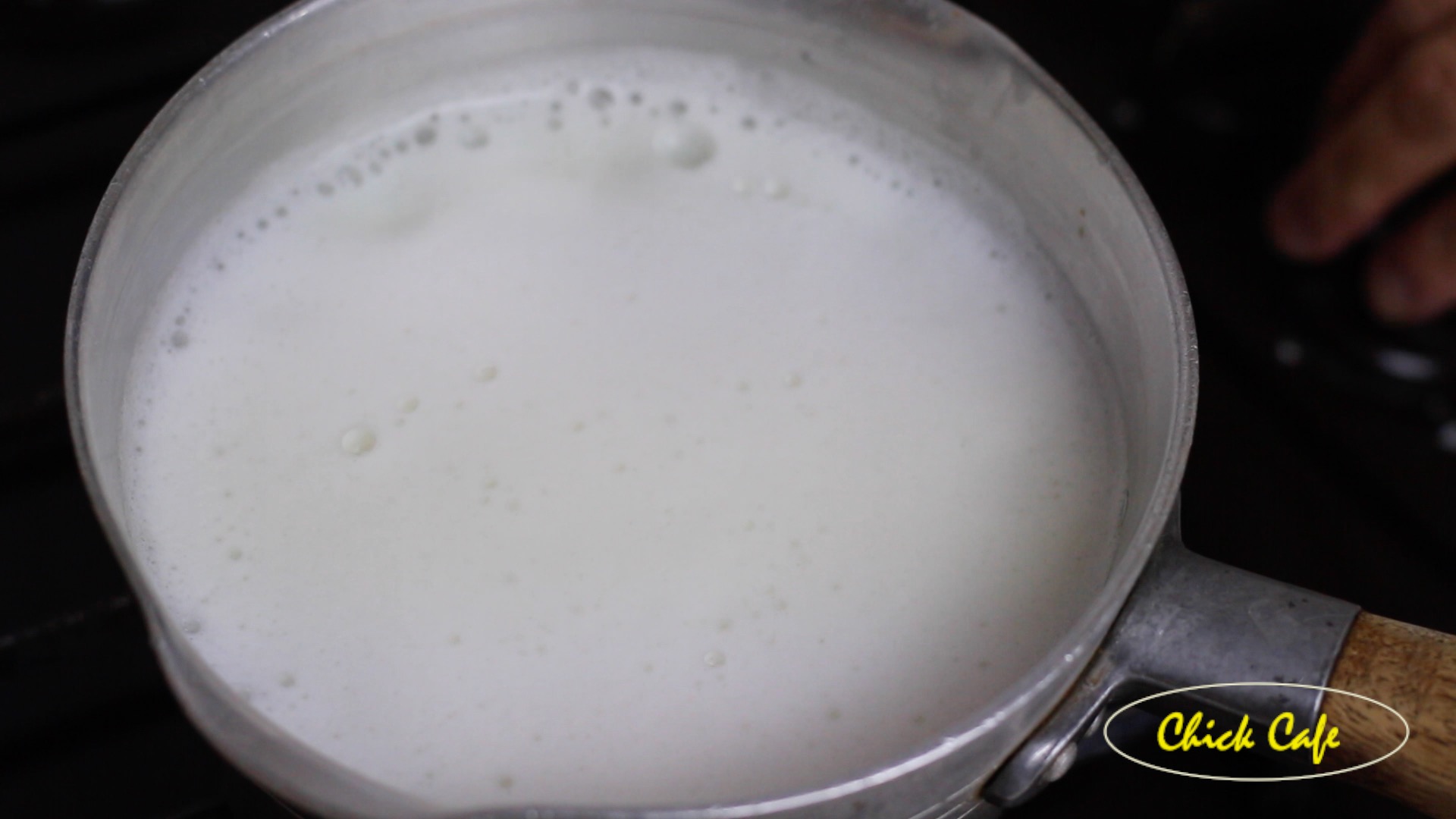 4 เมื่อนมเริ่มเดือดเเล้วจึงปิดไฟ เเละยกลง