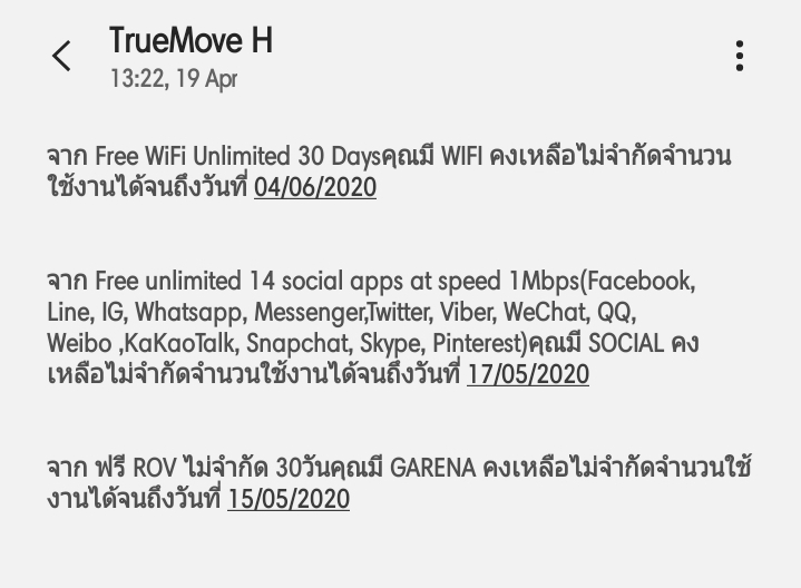 เมื่อวันก่อนเราซื้อเน็ต 4 Mbps ไม่ลดสปีด แล้วไม่รับข้อความตามนี้ คุณได้รับเงินคืน 19.62บ. จากโปรซื้อแพ็กเสริมคืนเมื่อเงิน50% เงินคืนหมดอายุภายใน 3วัน ใช้ซื้อเน็