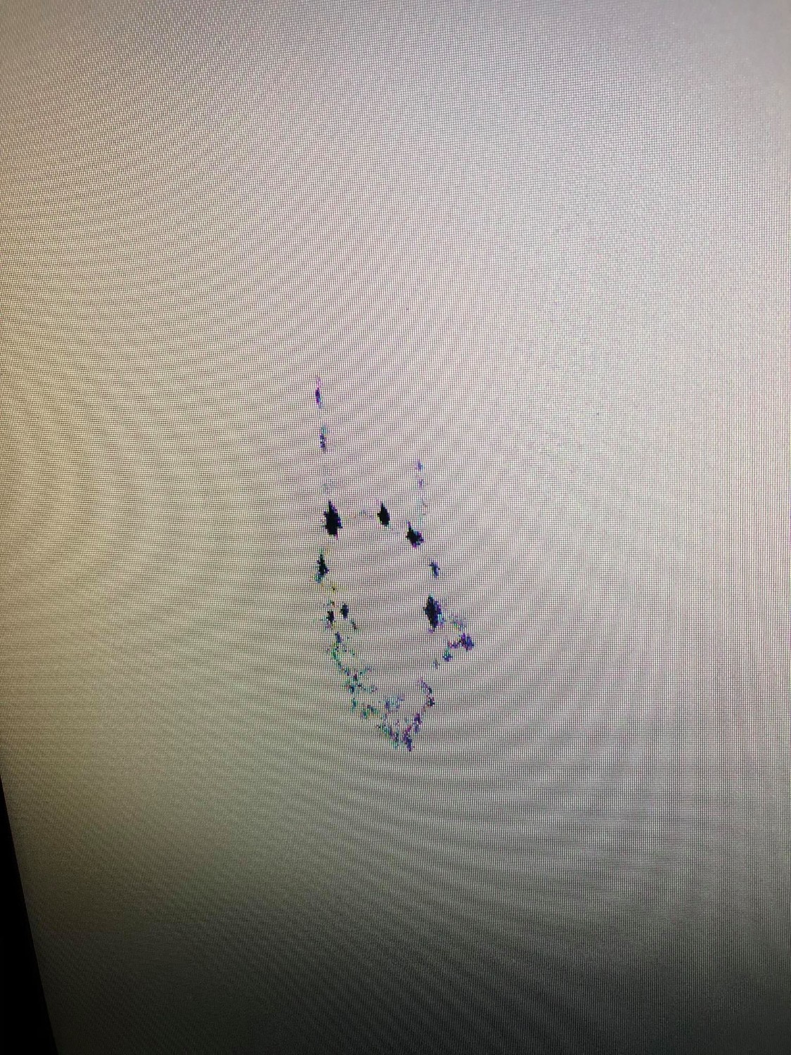 หน้าจอผมอยู่ดีก็มีเส้นสีฟ้าที่หน้าจอ พอผมเช็ดด้วยน้ำทำความสะอาดจอแล้วมันแตกออกเป็นอย่างงี้อ่ะครับ
