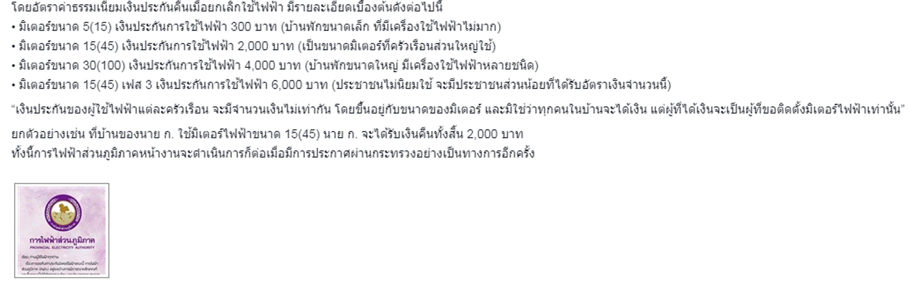 สอบถามไฟฟ้าภูมิภาคครับ มิเตอร์ไฟฟ้าบ้านผม 15(45) ทำไมได้เงินประกันคืนแค่ 1000 เดียวครับ ?