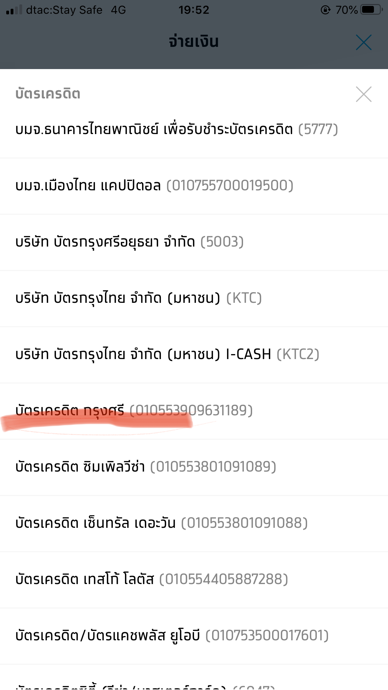 เลือกจ่ายบัตรเครดิตของกรุงศรีผ่าน krungthai next แต่เราเลือกชำระในเมนู บัตรเครดิต กรุงศรี เมื่อชำระเงินแล้ว กลับเห็ยว่าด้านบนมีเมนูให้เลือก บริษัท บัตรกรุงศรีอยุธยา จำกัด เลยไม่มั่นใจว่าชำระถูกหรือไม่ รบกวนผู้รู้ตอบด้วยค่ะ