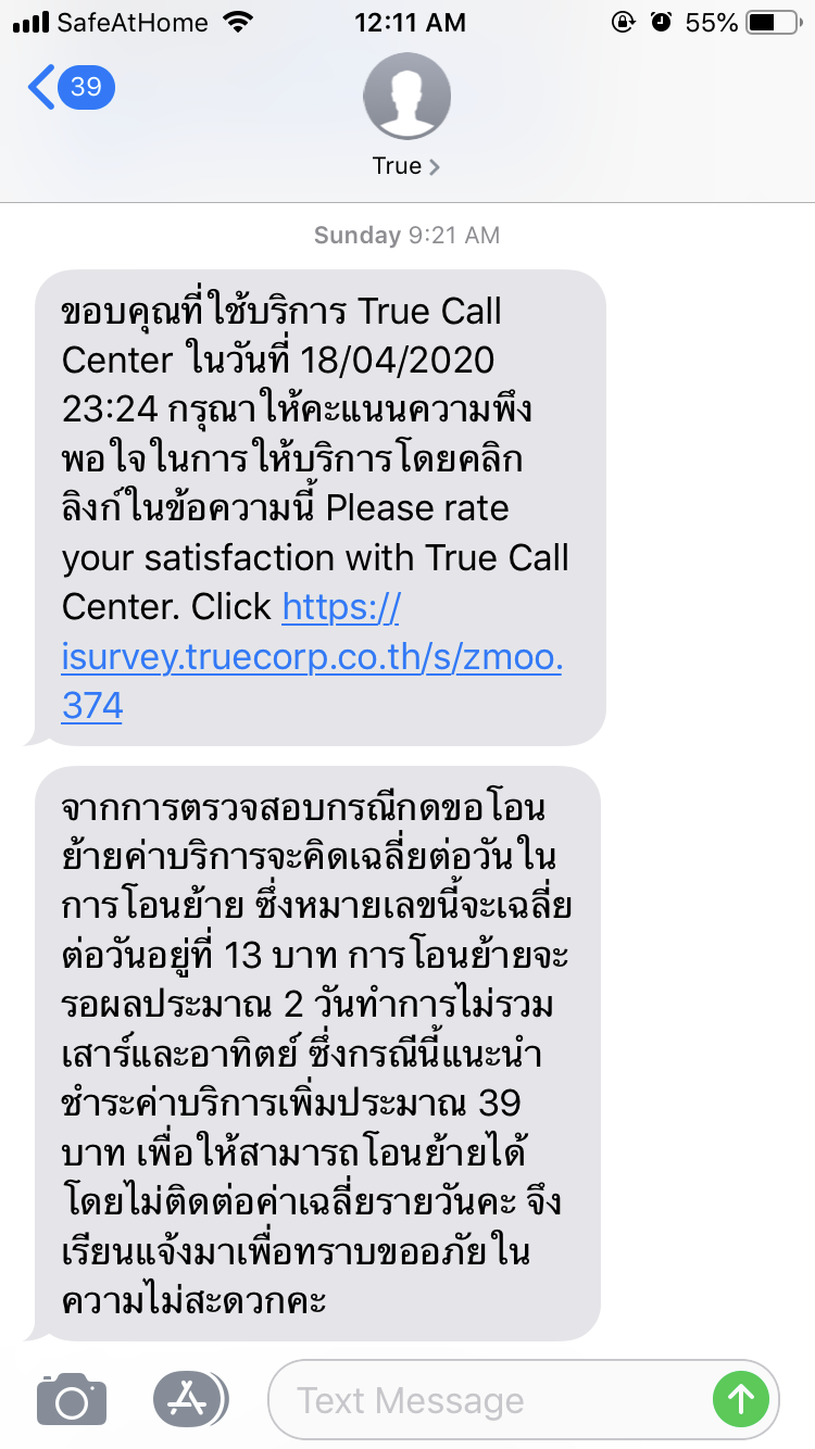 จนมันเลยมาทุกวันๆ แล้วแต่ละวันเราต้องจ่ายเงินค่าโทรรายวันให้ทรู พนักงานยืนยันว่า เดี๋ยวมีจนท.ติดต่อไป จะมาร์คไว้เป็นเคสด่วน