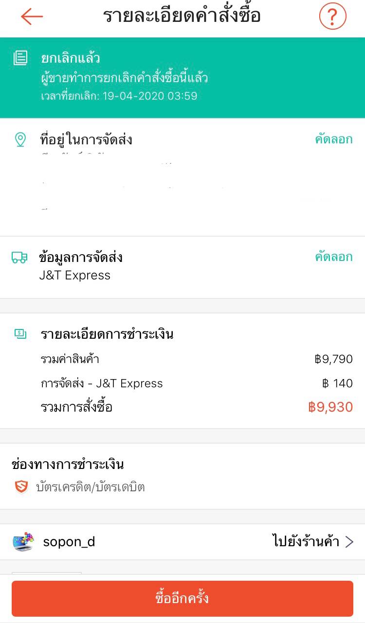 ก้มหน้า ยอมรับกรรมจากร้านที่ยกเลิกสินค้า รอเงินคืน จาก shopee ไป 7 - 45 วันทำการ และไม่สามารถรีวิวร้านในแอพได้ด้วย ร้องเรียนอะไรก็ไม่ได้ สรุปร้านลอยตัว มีแต่รีวิวดี ๆ ต่อไป ขายคนอื่นต่อไป