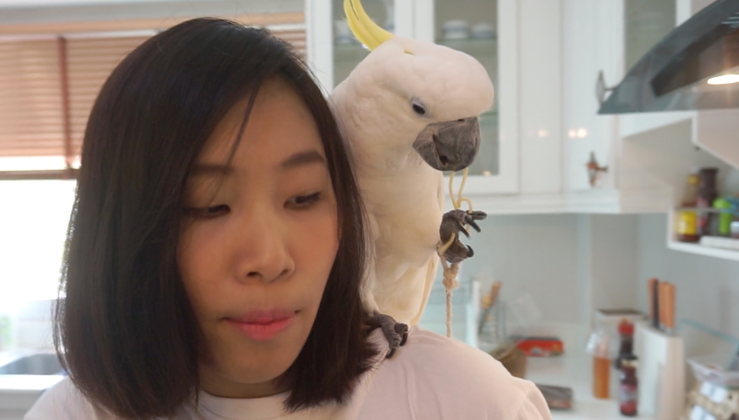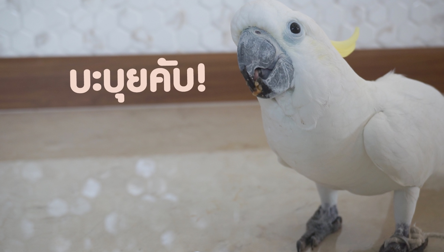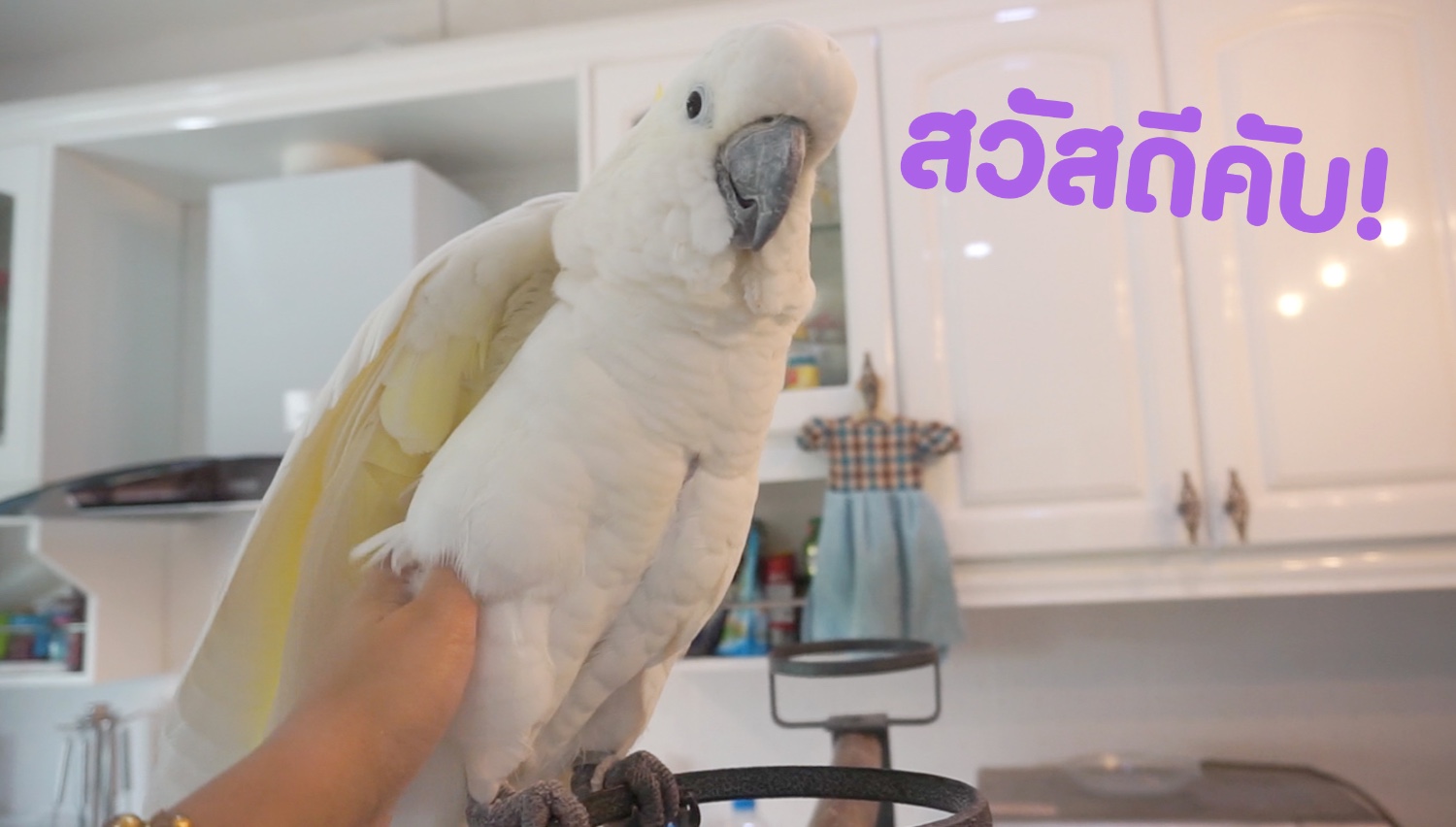 "สวัสดีคับ ผมชื่อไก่ย่าง ผมเป็นนกนะไม่ใช่ไก่! ที่ตัวขาวๆผมก็ไม่ใช่เป็ดนะ ผมเป็น นกกระตั้วฮัฟ"