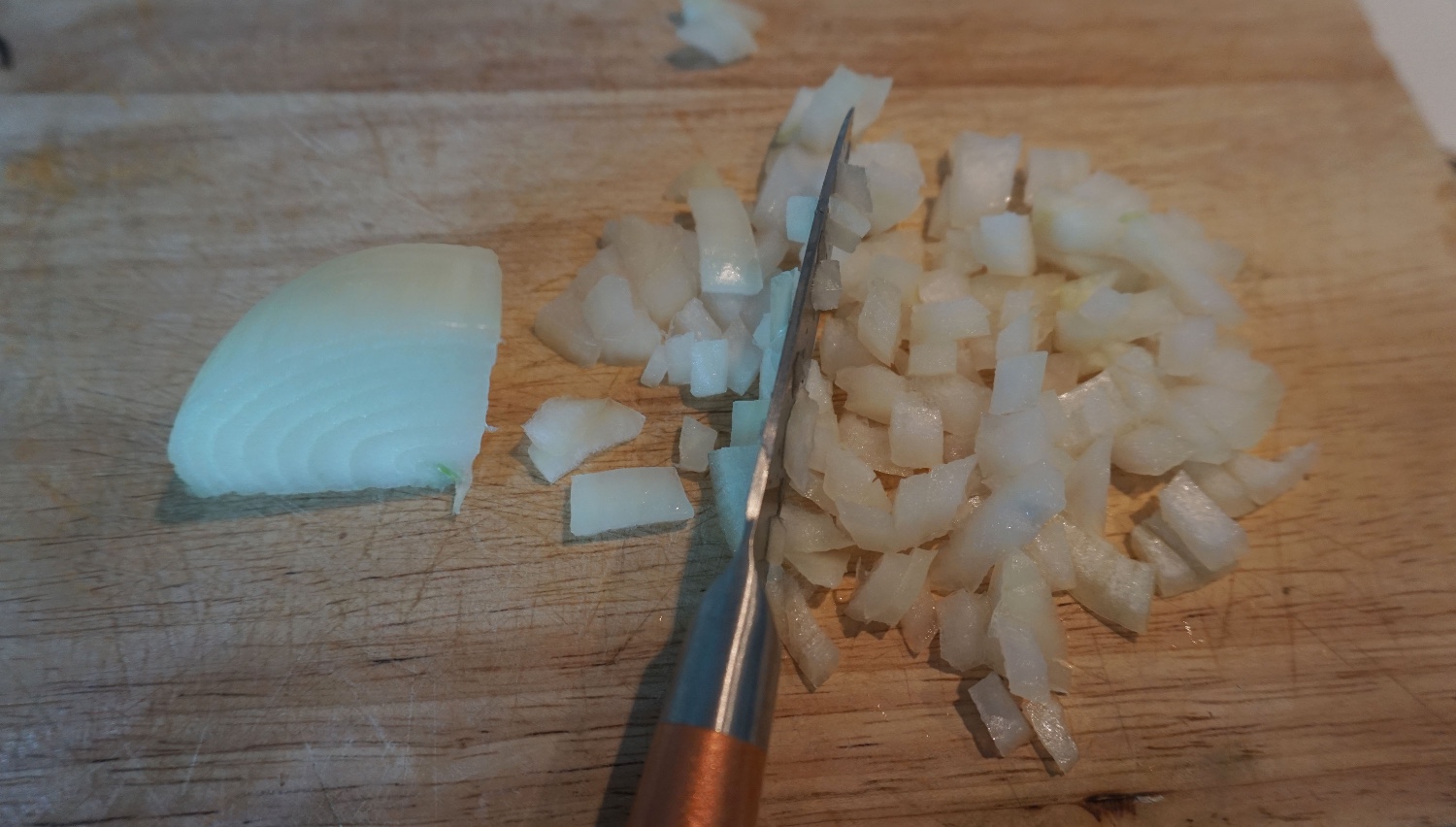 หั่นเล็กๆเพราะว่าต้องการต้มแล้วให้มันนิ่มง่ายๆ