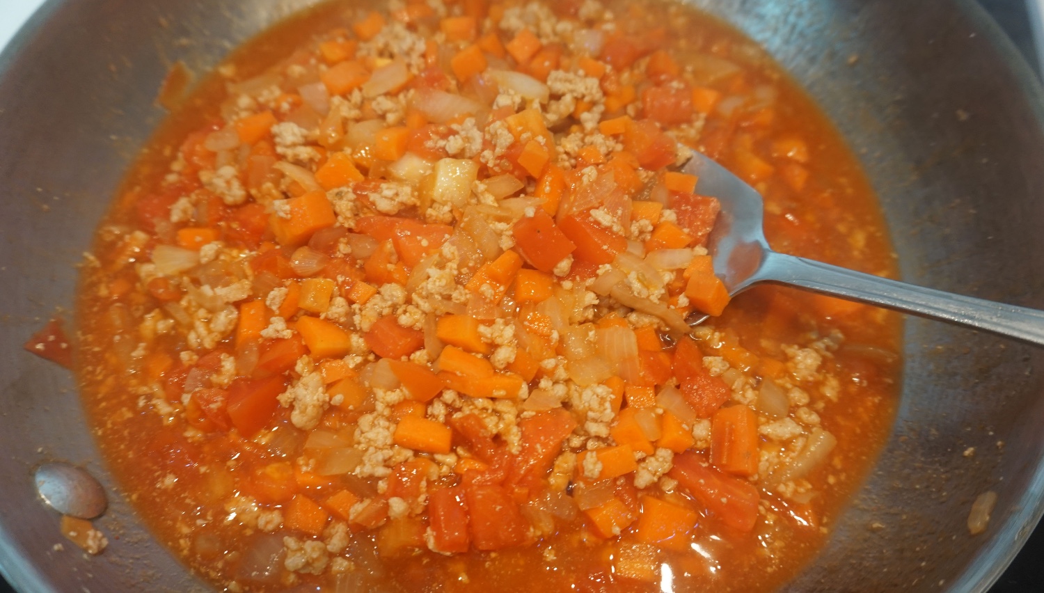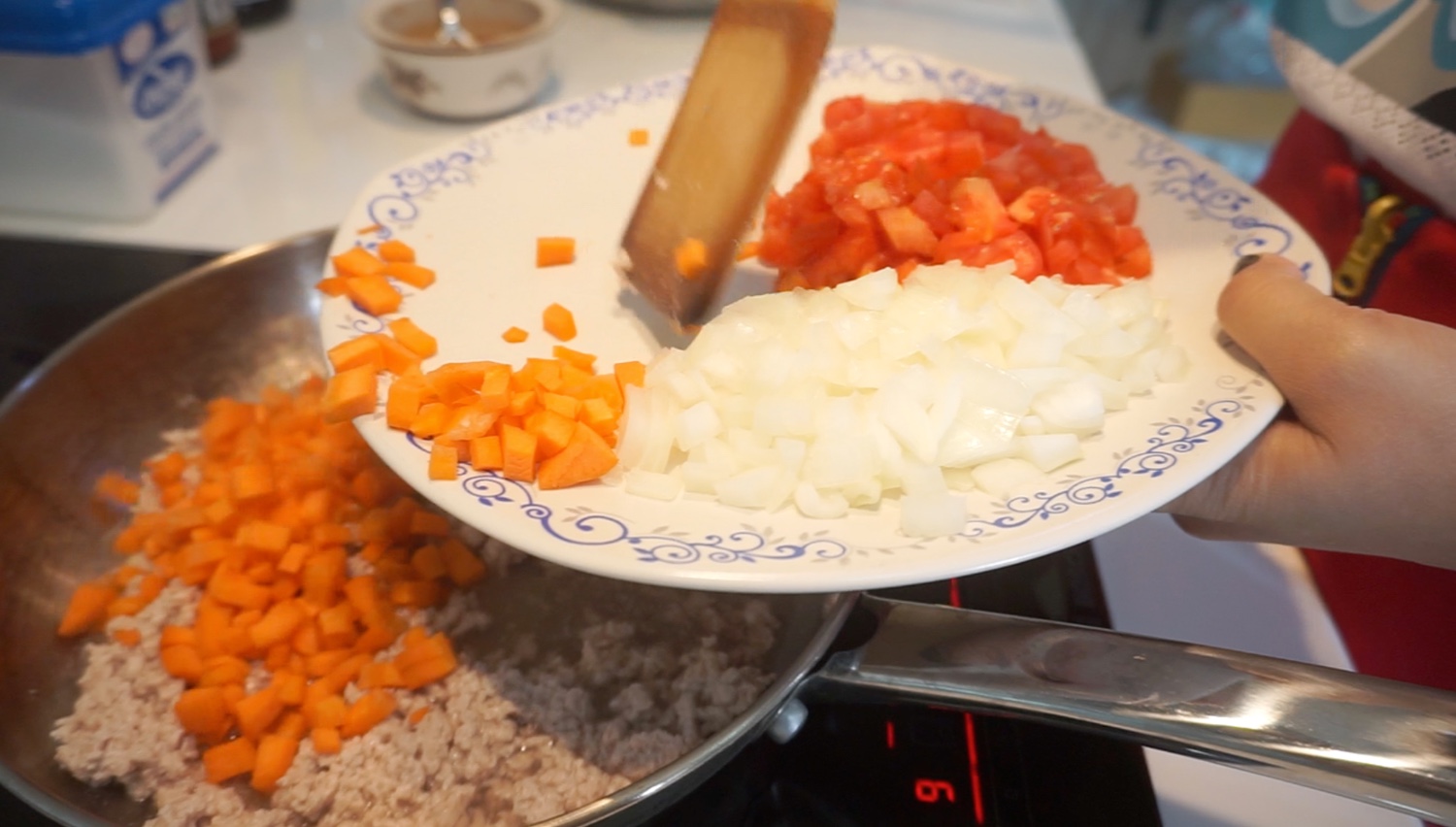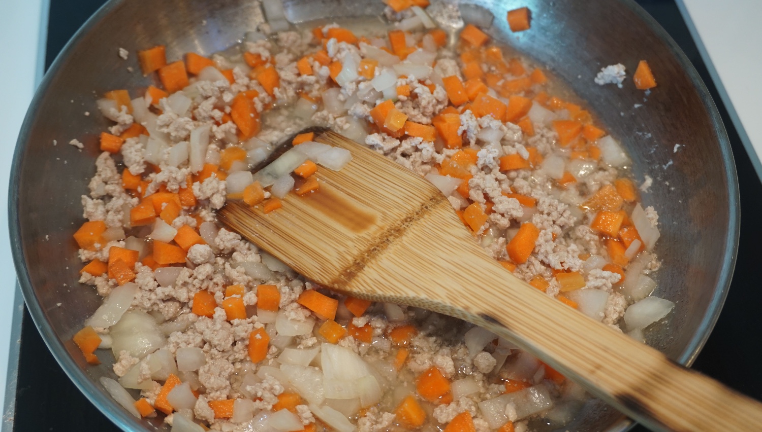 พอหมูสุกแล้ว ใส่แครอทกะหอมใหญ่จ้า การทำอาหารไม่ต้องเครียดหรอกว่ารสชาติมันจะออกมาเป็นไง ทำๆไปสบายๆขอให้สะอาดก็พอ