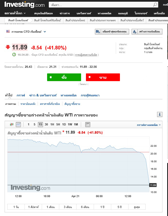 น้ำมัน WTI June ไม่ยอมน้อยหน้า May ตามไปติด ๆ $ 11.89 เหรียญ -41.80 %