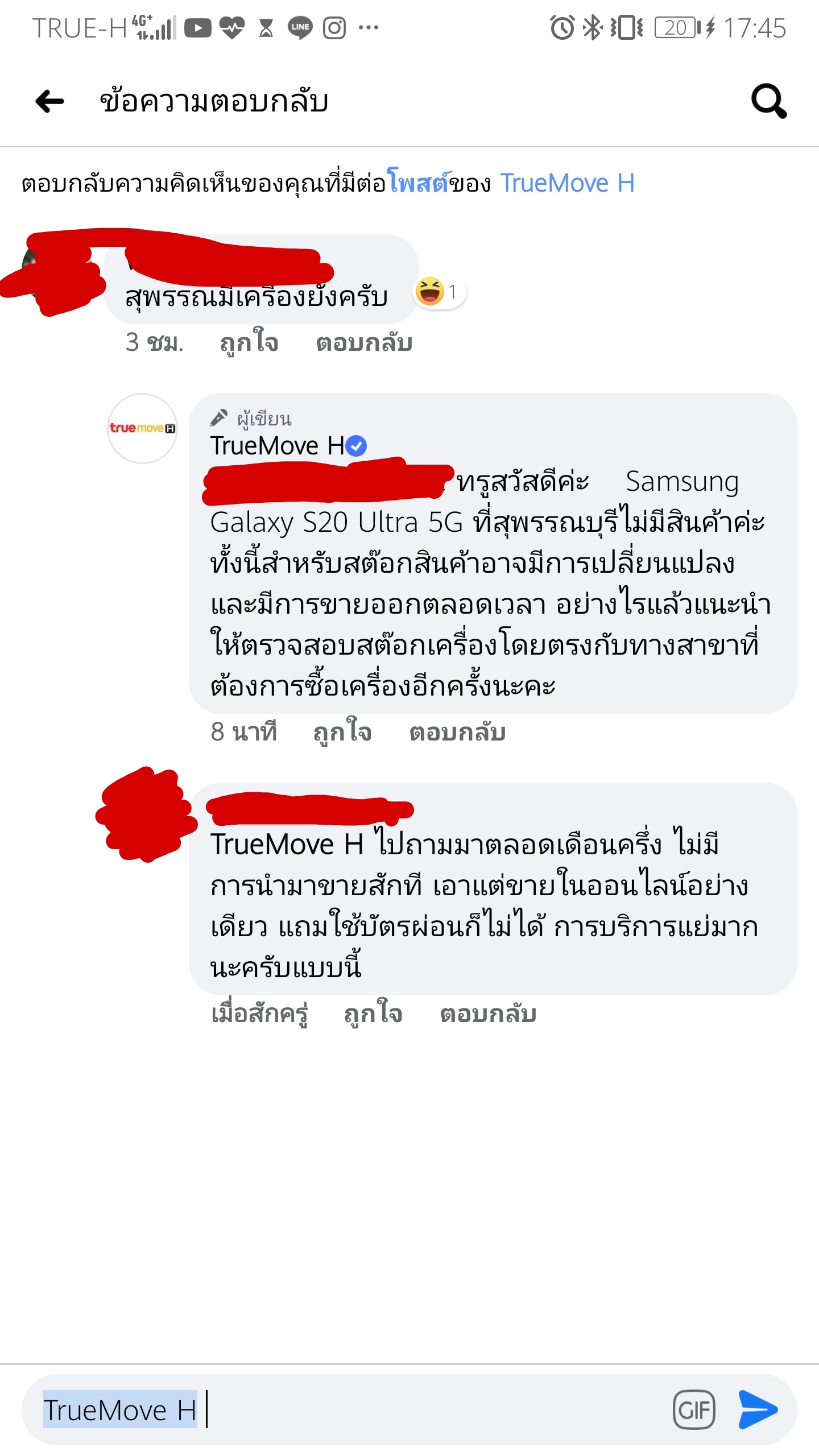 เรื่องมีอยู่ว่า ไปติดต่อเพื่อจะซื้อ samsung s20 ultra กับทางศูนย์บริการ truemove ในสุพรรณบุรี ตั้งแต่วันที่ 12 มีนาคม 2563