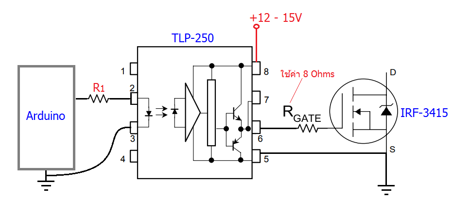 มี VGS ที่ใช้กันแบบอิ่มตัวที่ 10V ดังนั้นไฟเลี้ยง TLP-250