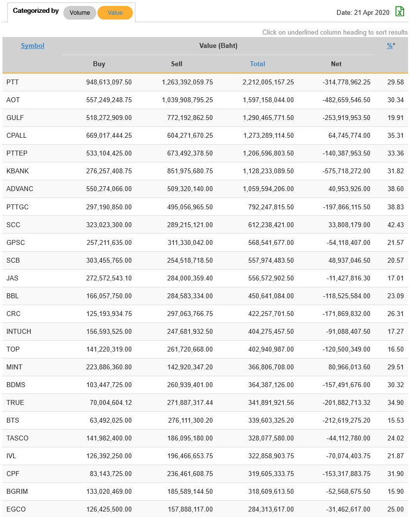 นักลงทุนต่างชาติ NVDR ซื้อ-ขาย มูลค่าสูงสุด 25 อันดับ 21/04/63