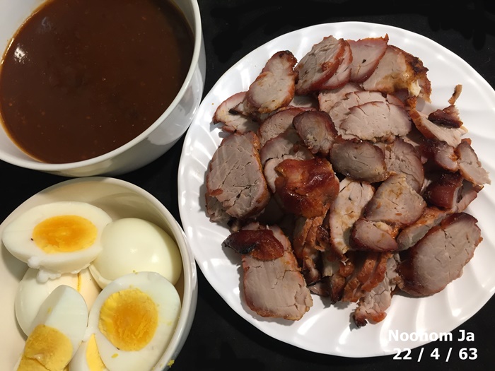 อาหารการกินบ้านเรา เช้านี้ หมูแดงไข่ต้ม ส้าบ่าเขือผ่อย ต้มจืด ผัดกะหล่ำ ขอให้เพื่อนๆและนริสรา ประสบพบเจอแต่สิ่งที่ดีงามปลอดภัยจากโรคระบาดในครั้งนี้