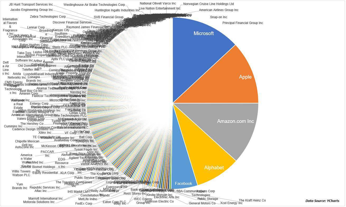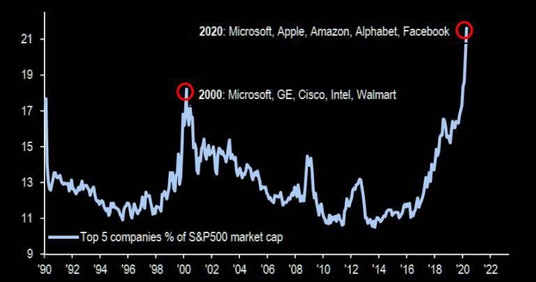 ภาพ S&P 500 weighted และมูลค่าตลาดของ 5 หุ้นใหญ่