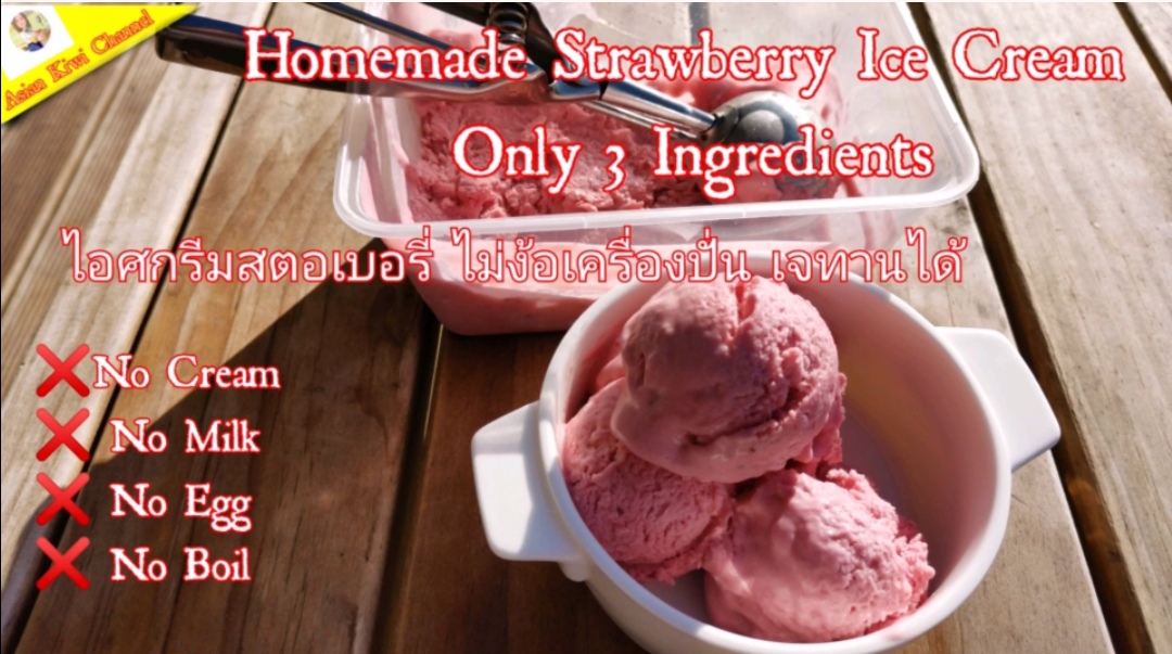 #ไอศครีมสตอเบอรี่ ทำง่าย ใช้วัตถุดิบแค่ 3 อย่างเหมาะมากช่วงกักตัว เพราะไม่ง้อสตอเบอรี่ ไม่ง้อเครื่องปั่น เจทานได้ แพ้นมวัวทานได้คะสูตรนี้