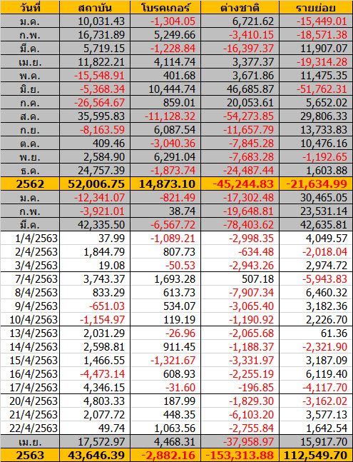 Sinthorn Summary 22/4/2563 : ต่างชาติขายสุทธิ -2,755.84 ลบ.