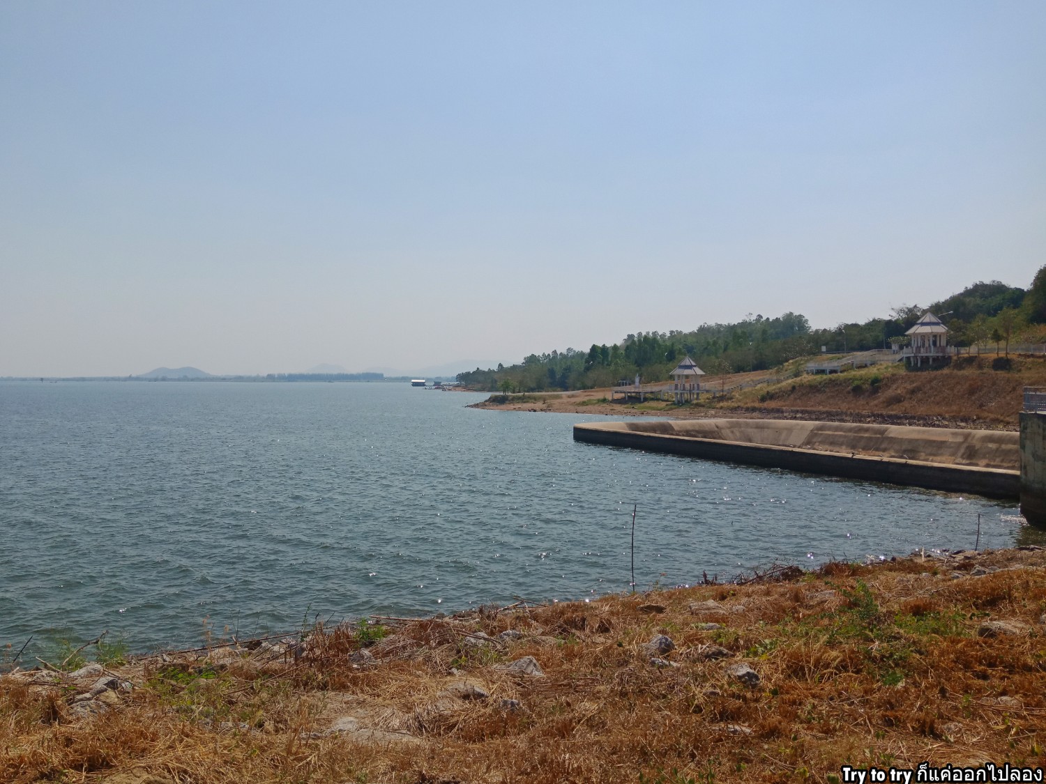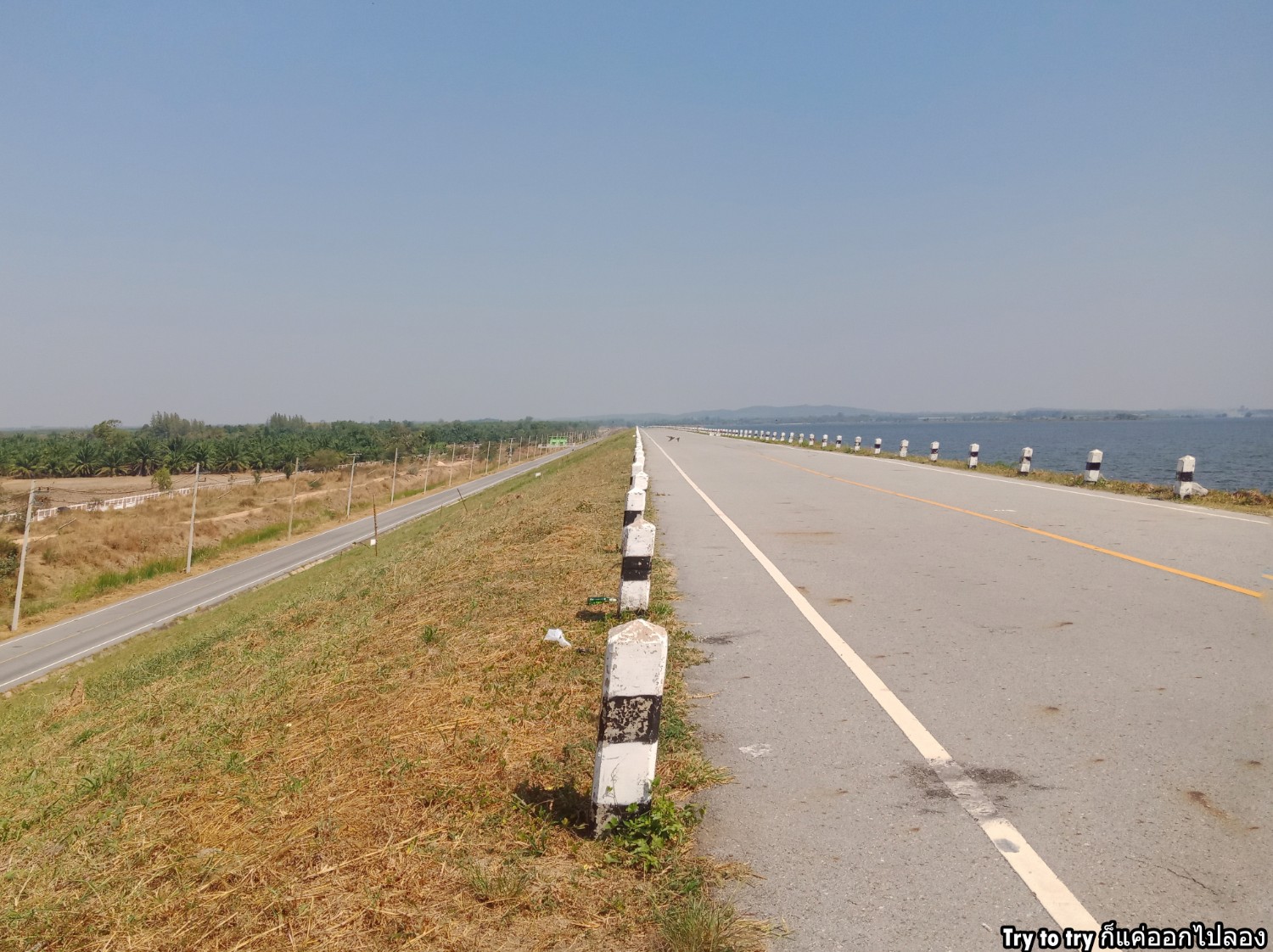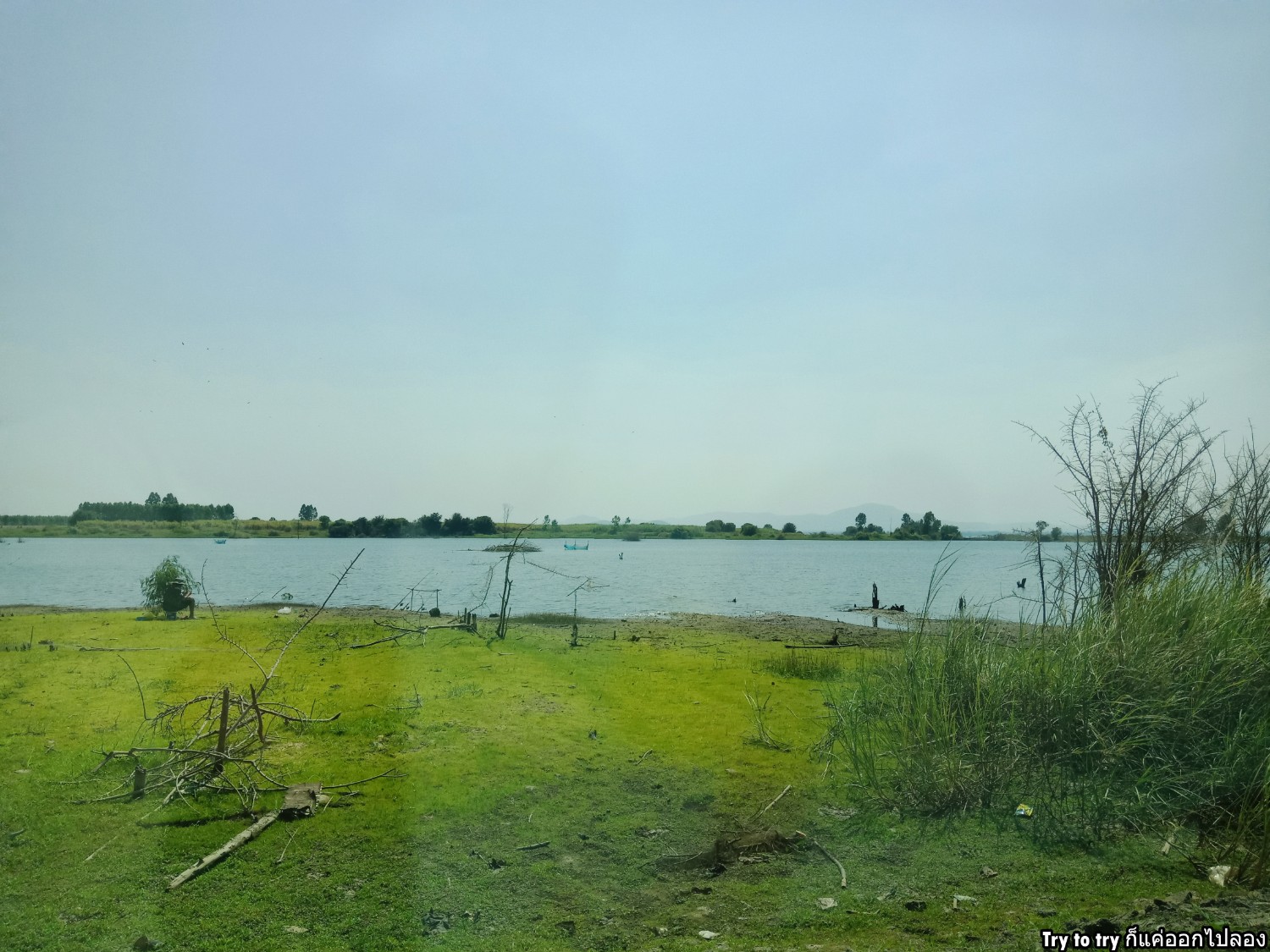พอตาม GPS ไปจนสุดทางก็ค้นพบว่า "เรามากันผิดทาง" จริงๆ ด้วย ภาพที่เห็นคือข้างซ้ายก็เป็นน้ำ ข้างขวาก็เป็นน้ำ และข้างหน้าก็ยังเป็นน้ำอีกเช่นกัน นี่คงไม่ใช่ทางเข้าเขื่อนที่ว่านั่นกระมัง