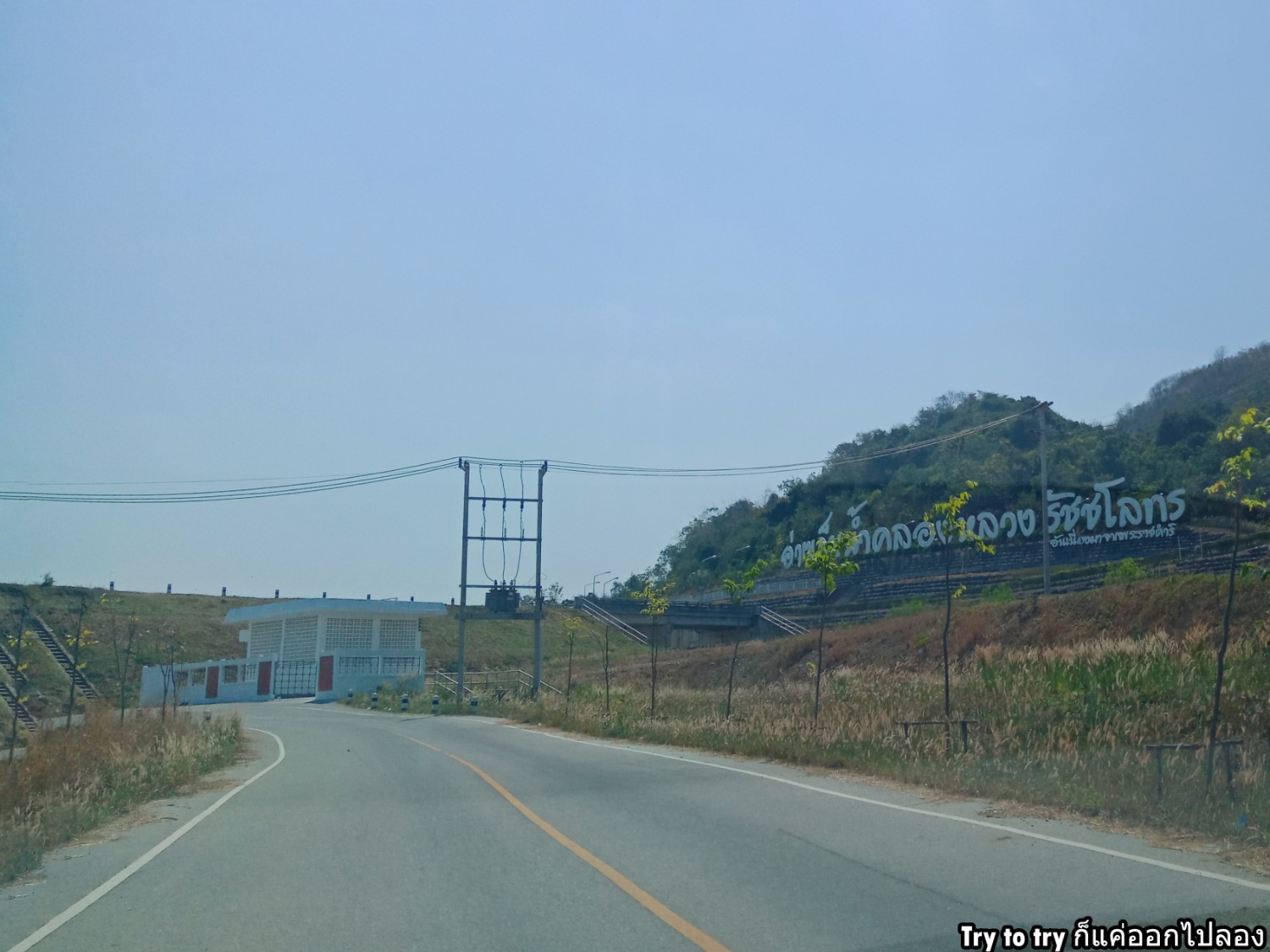 ก็เลยตั้ง GPS กันใหม่เพื่อหาทางเข้าเขื่อน ซึ่งเป็นเขื่อนที่หาทางเข้ายากเป็นอย่างยิ่ง แล้วพออาจารย์ขับรถเข้ามาเรื่อยๆ จนเริ่มเห็นป้ายเขื่อน จึงมั่นใจได้ว่า เราไม่หลงทางกันแล้ว แต่สองข้างทางก็ยังคงเงียบ เราก็สังเกตไปเรื่อยๆ จนเจอกับซุ้มร้านค้าที่ตั้งเรียงรายกันอยู่ หากมองดีๆ จะพบว่า เป็นร้านค้าที่ไม่มีคนสักคน