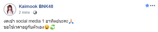 ประกาศพักงานและการใช้ Social Media เมย์จิ BNK48 เป็นเวลา 1 เดือน