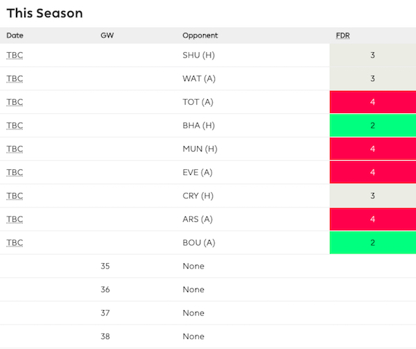 >> ทาง FPL ได้ปรับให้ Gameweek 36-38 กลายเป็น Blank ทั้งหมด
