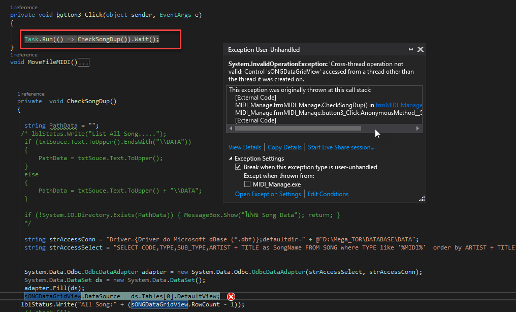 ตามรูปเลยครับพอใช้ task ตัว DataGridView Error ครับ