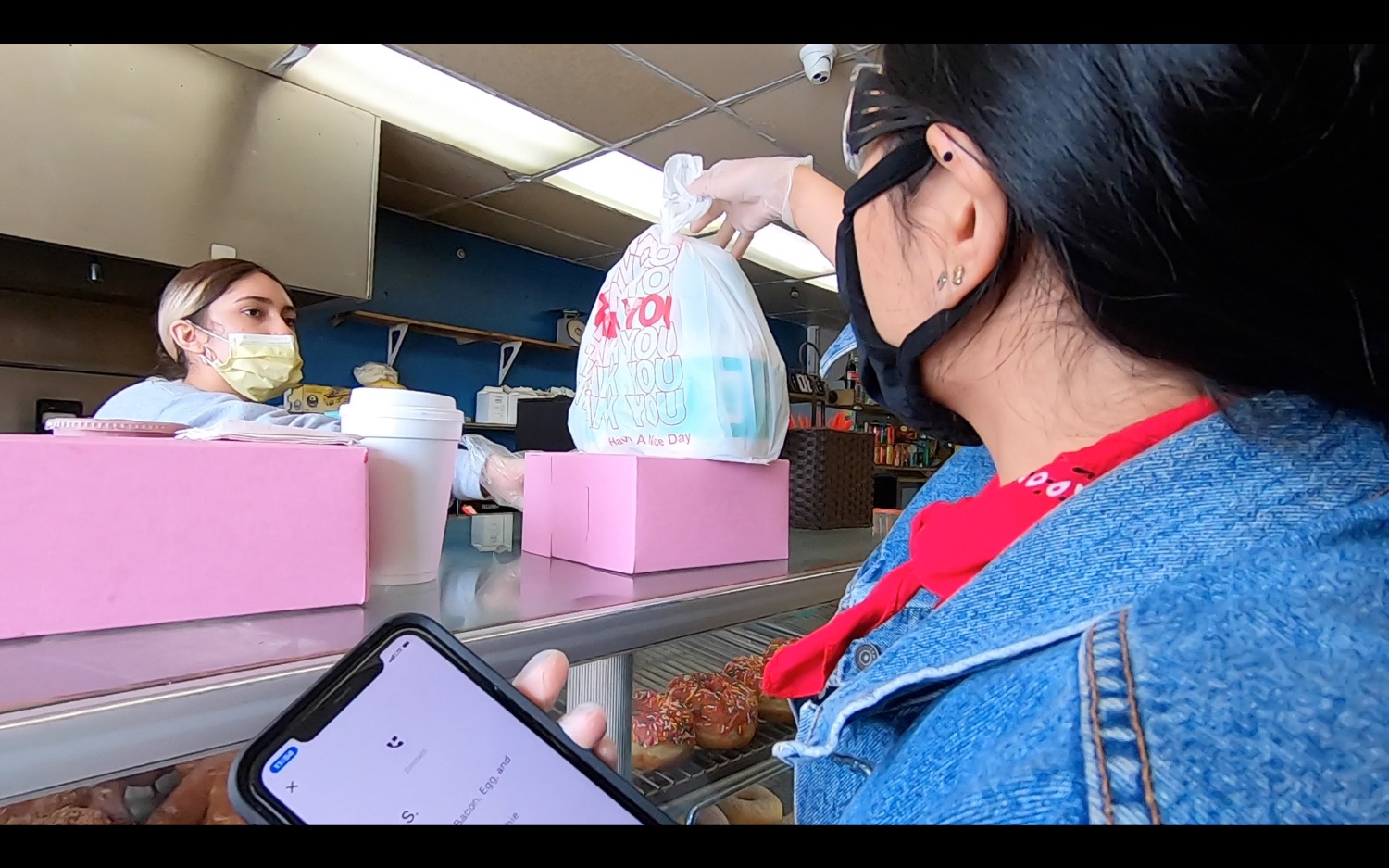ร้านนี้ขายโดนัทคะ แต่ช่วงนี้หันมาขายกระดาษทิชชู่ด้วย แล้วก็มีลูกค้าสั่งซื้อด้วยคะ คือในอเมริกาจะไม่มีฝักบัวชำระ เขาใช้ไม่เป็นกันด้วยคะ