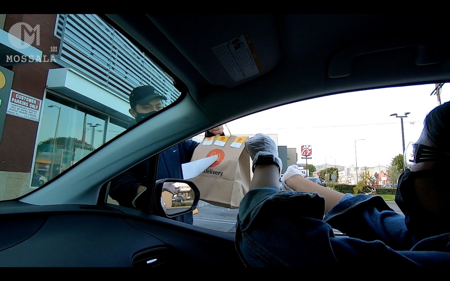 อันนี้มารับอาหาร Mc Donald's เขาให้เรารอในรถจอดตรงหมายเลข 1