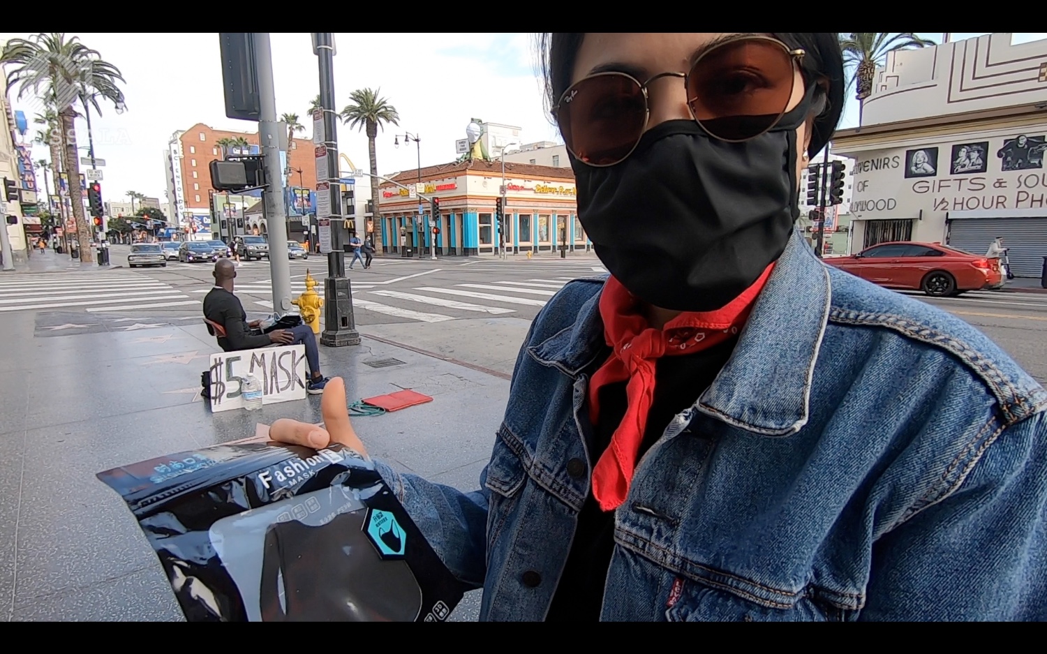 แวะมาส่งอาหารแถวฮอลีวูด ย่านดัง เจอพี่คนนี้ปกติเป็นศิลปินเปิดหมวก ตอนนี้ผันตัวมาขายหน้ากาก เพราะนักท่องเที่ยวไม่มีมาเลย เงียบมากคะ