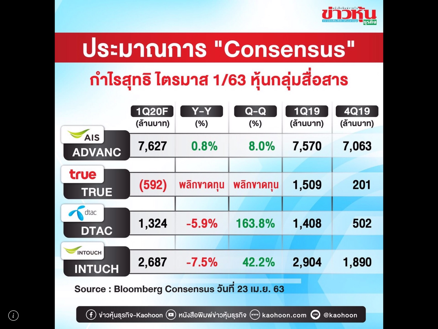 ประมาณการกำไรสุทธิ ไตรมาส1\63 หุ้นกลุ่มสื่อสาร