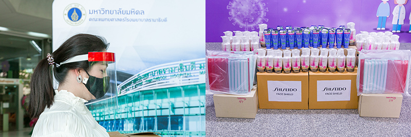 บริษัท ชิเซโด้ (ไทยแลนด์) จำกัด ทำการส่งมอบอุปกรณ์ป้องกันใบหน้า (เฟสชิลด์) และผลิตภัณฑ์ในเครือ ชิเซโด้ ให้แก่โรงพยาบาล 10 แห่ง ในเขตกรุงเทพฯและชลบุรี เพื่อสนับสนุนการทำงานของทีมแพทย์ พยาบาล และบุคลากรทางการแพทย์