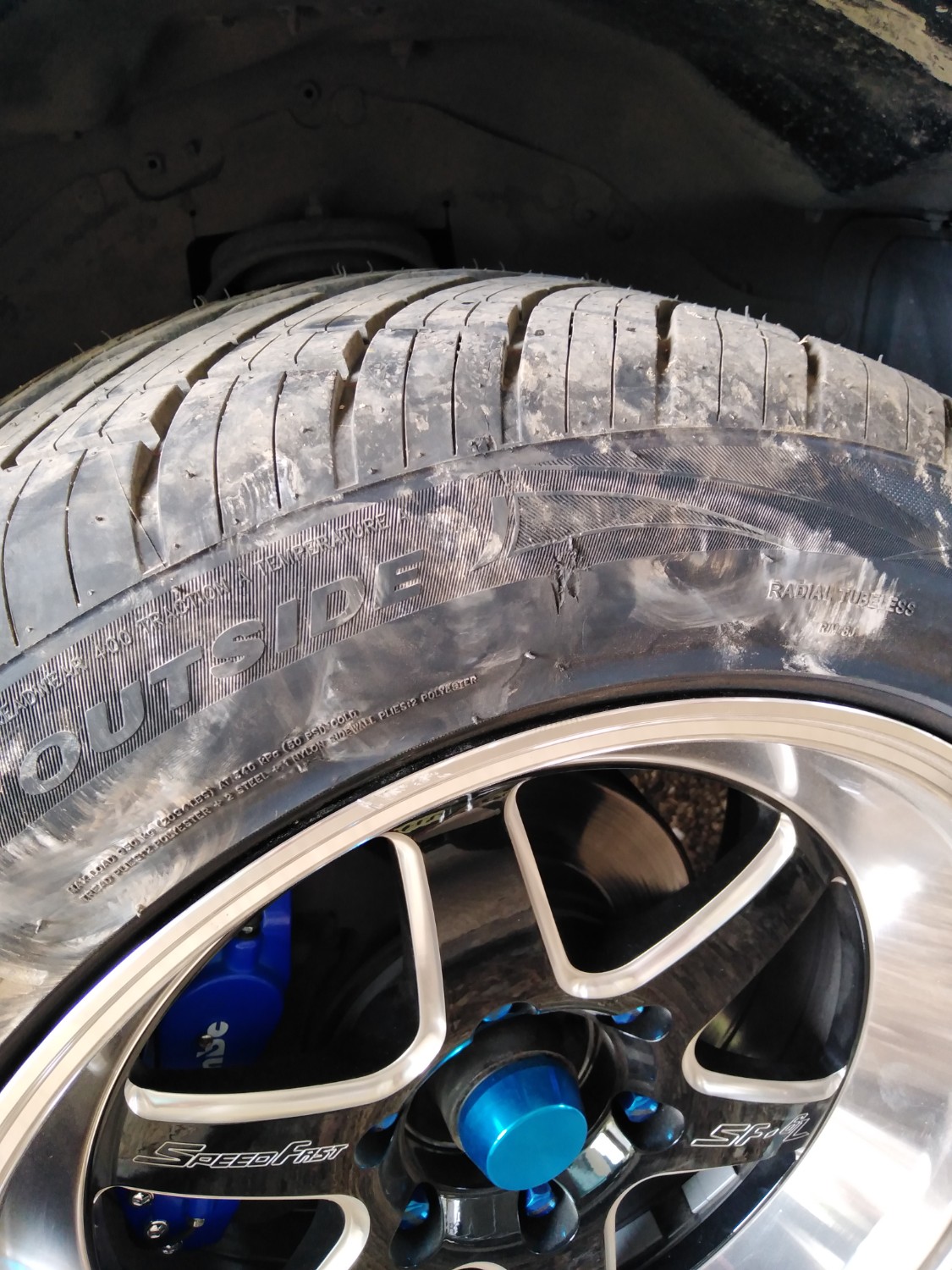 เอายางไปขูดกับขอบฟุตปาธ ยางแหว่งไปประมาณ ลึกครึ่งเซนต์ กว้าง 1.5 เซนต์ ตรงตำแหน่งตามรูป จะมีปัญหา ยางแตกเวลาวิ่ง ทางไกลมั๊ยครับ ยางปี 2021 ปกติ วิ่งวัน