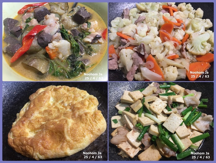 เมนูอาหารการกินบ้านเรา เช้านี้ แกงเผ็ด ผัดกะหล่ำดอก ไข่เจียว ผัดเต้าหู้ เมนูวนไปให้พออิ่มท้อง ขอให้ อนลัส และเพื่อนๆปลอดภัยจากโรคระบาดมีความเป็นอยู่ที่ดีตามอัตภาพ โชคดีนะ