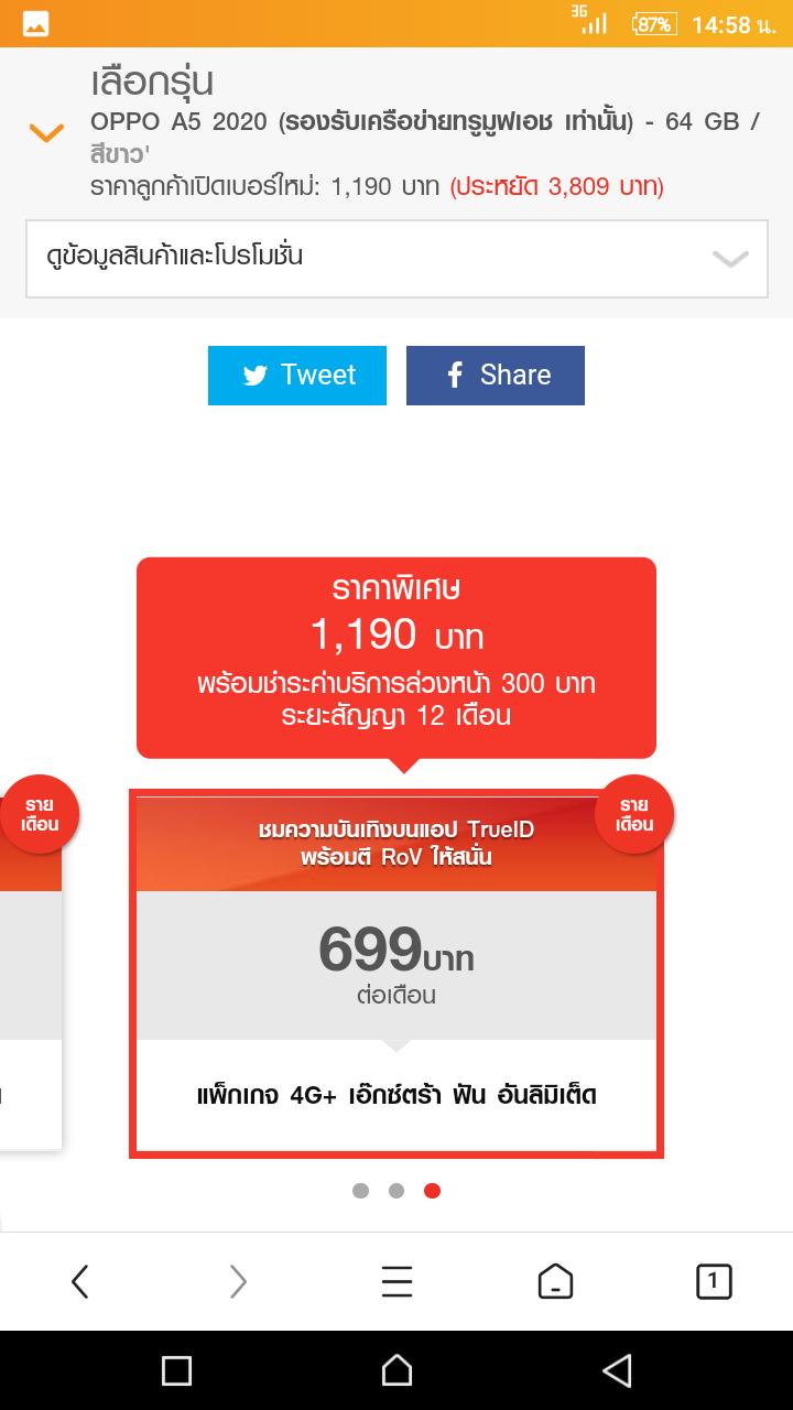 สอบถามครับ คือผมสนใจจะซื้อโทรศัพท์รุ่น Oppo a5 2020 ติดโปรทรูมูฟ