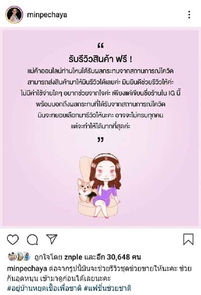 แถมโปรโมทผ่านอินสตาแกรมส่วนตัว เพื่อช่วยพ่อค้า-แม่ค้าออนไลน์ด้วย