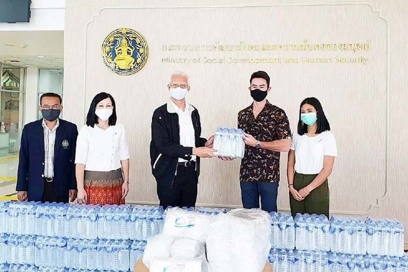 ส่วน หลุยส์ เฮส ก็ซื้อน้ำดื่มและหน้ากากผ้า ไปมอบให้กระทรวงการพัฒนาสังคมและความมั่นคงของมนุษย์