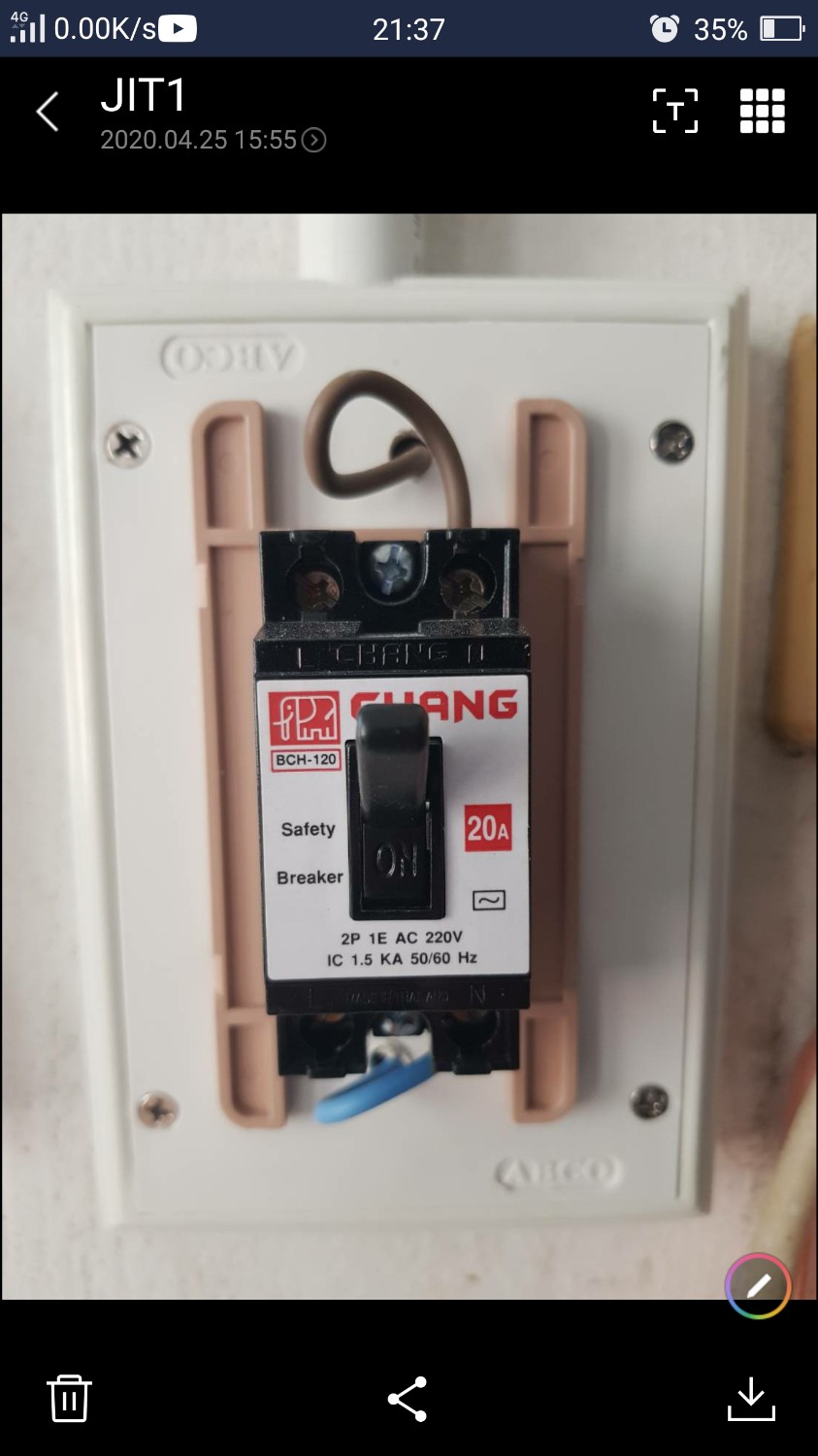 ให้ช่างมาติดแอร์ที่บ้าน 9000 BTU ติดเบรคเกอร์ 20A. และเดินสายไฟแค่สาย Line เส้นเดียวผ่านเบรอคเกอร์ แบบนี้ก็ได้หรอครับ