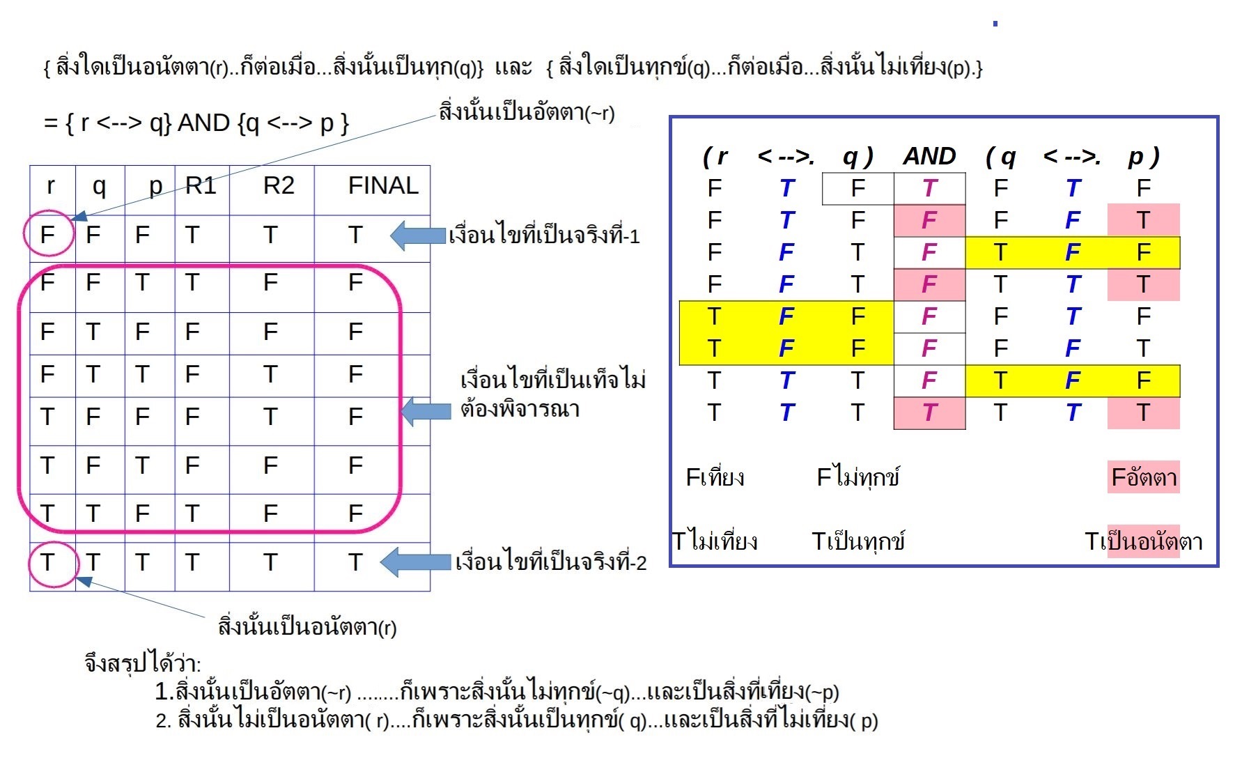 นี่คือคำพระศาสดา...ที่กล่าวว่า If ( ~r ) then only if { ( ~q ) and ( ~p ) } เป็นไปตามตารางที่พิสูจน์ในเงื่อนไขที่ -1 ครับ