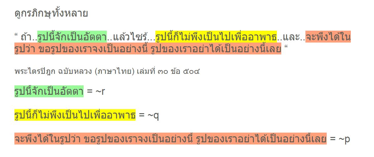 สิ่งใดไม่เที่ยง(p) --> สิ่งนั้นเป็นทุกข์(q) สิ่งใดเป็นทุกข์(q) --> สิ่งนั้นเป็น...อนัตตา(r)..แล้วถ้าเป็นอัตตา..หละ ??