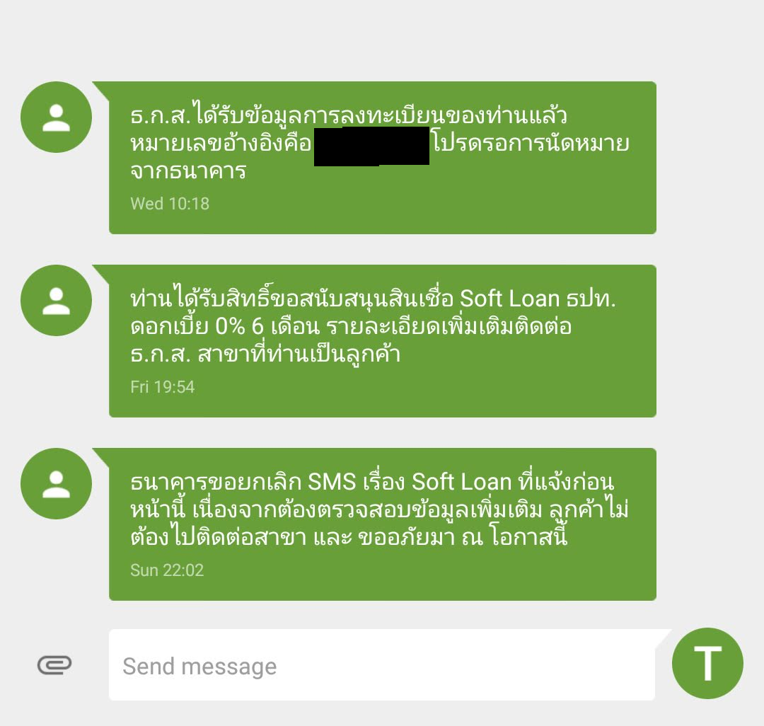 สินเชื่อฉุกเฉินสำหรับผู้รับผลกระทบจากไวรัสโควิด-19 ของ ธกส. มีใครได้SMS แบบนี้บ้างครับ