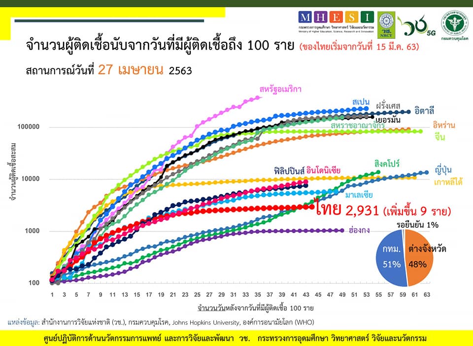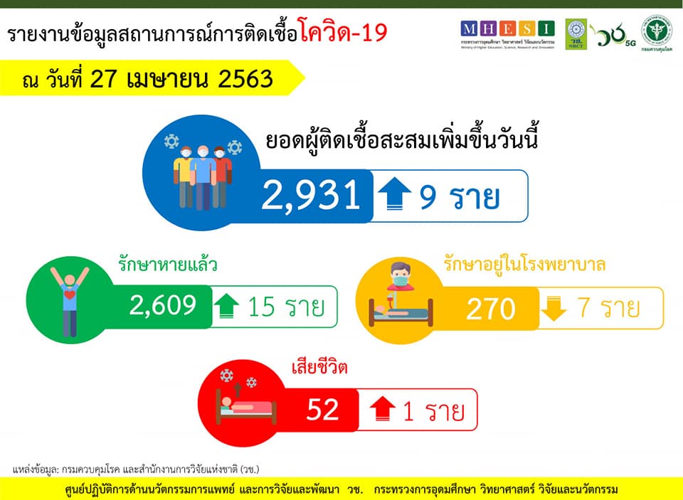 รายงานข้อมูลสถานการณ์การติดเชื้อโควิด-19 ณ วันจันทร์ที่ 27 เมษายน 2563