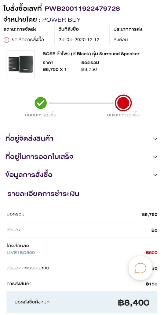 วันที่ 24 เมษายน 2020 - PowerBuy ทำโปรผ่านทาง facebook live เป็นสินค้าของ Bose sale เวลา 11.00น.